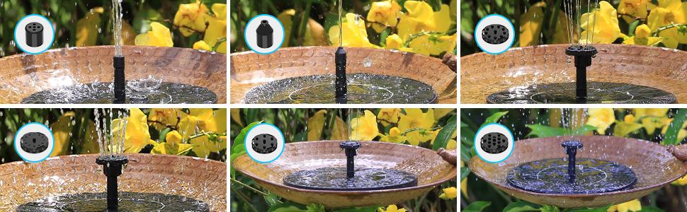 Contains 6 different nozzles, You can combine 13 different spray shapes and patterns, Adjust the water height and mode by replacing the nozzles to avoid splashing out of the basin. The spray height can reach 30-50cm. adding more fun to your garden.