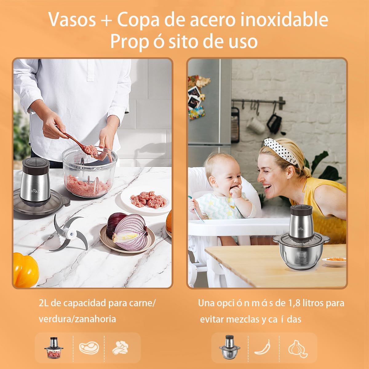 🥩[1.8L STAINLESS STEEL CUP] The meat grinder container is made of food-grade 304 stainless steel, which is stronger and more durable than glass and plastic, and lasts longer.