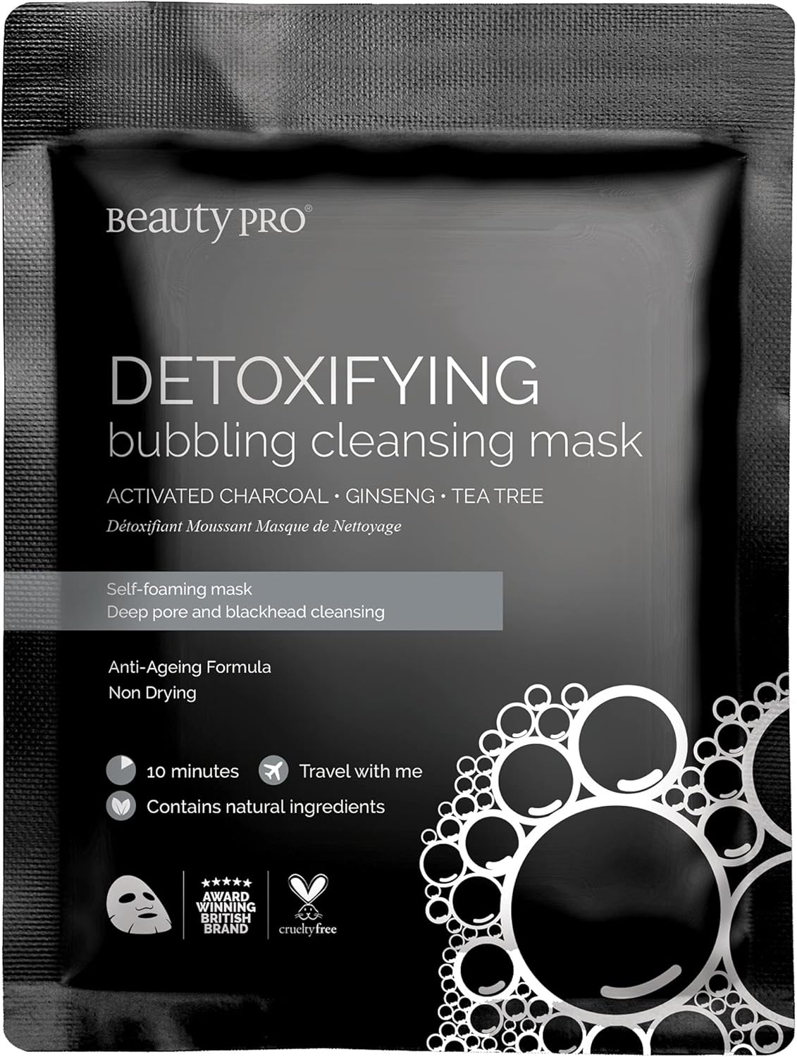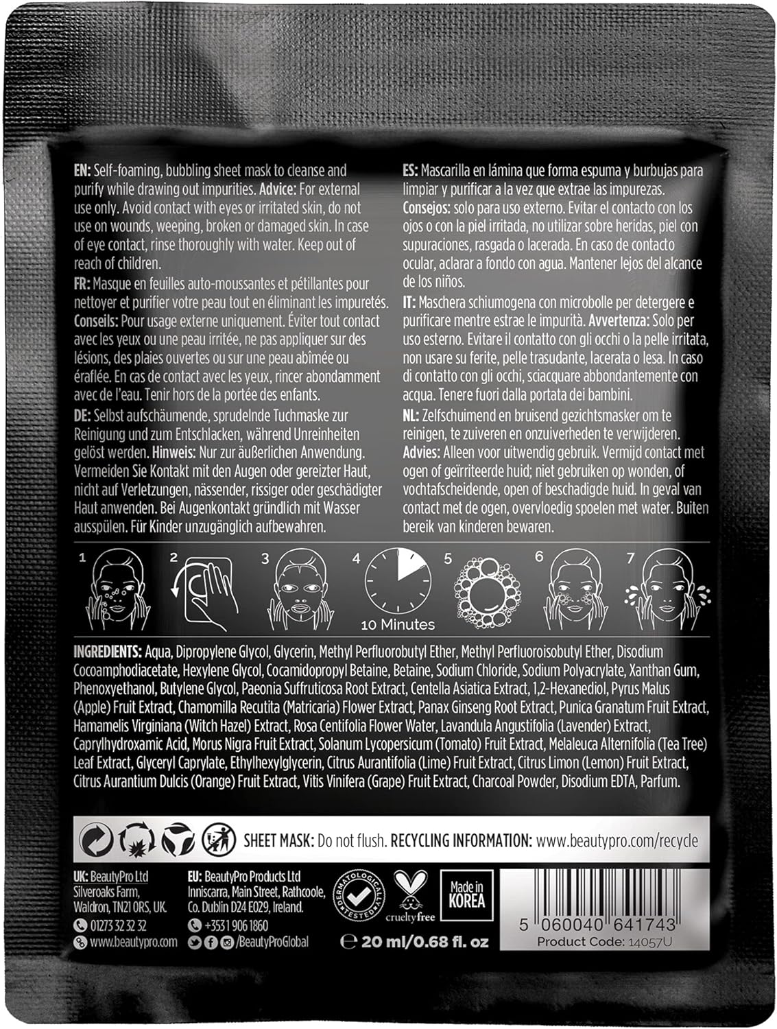 BEAUTYPRO DETOXIFYING & Cleansing Bubble Mask | Packed Full of Natural Ingredients | Activated Charcoal Sheet Mask with AHA Complex | Intense Deep Pore Cleansing Mask | Blackhead Remover Mask |