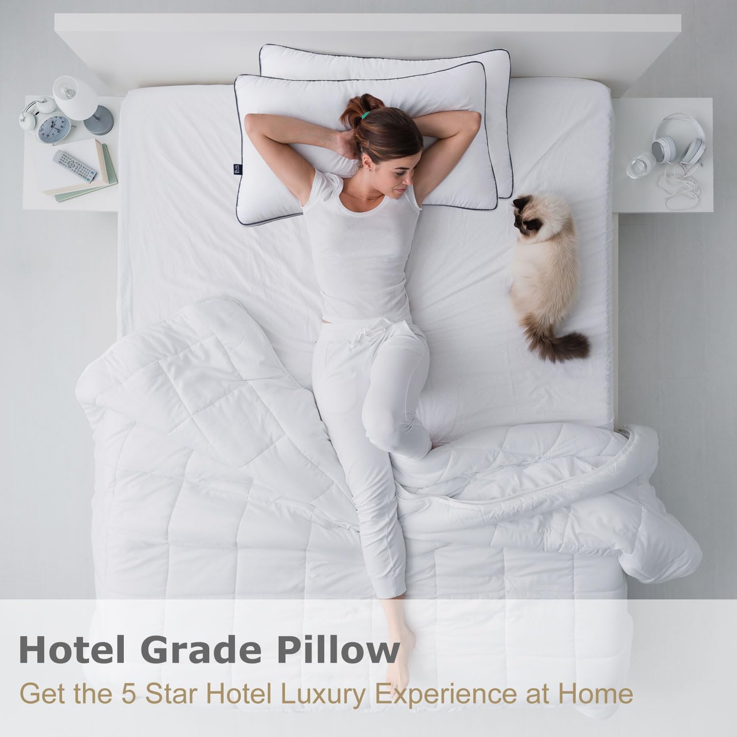 【Breathable & Odorless】Vacuum Packaging, The cover is made of a soft-touch microfibre cover to keep it super smooth, soft and skin-friendly. No matter which sleeping position you like, you can experience the luxury experience of a 5-STAR hotel at home every night.