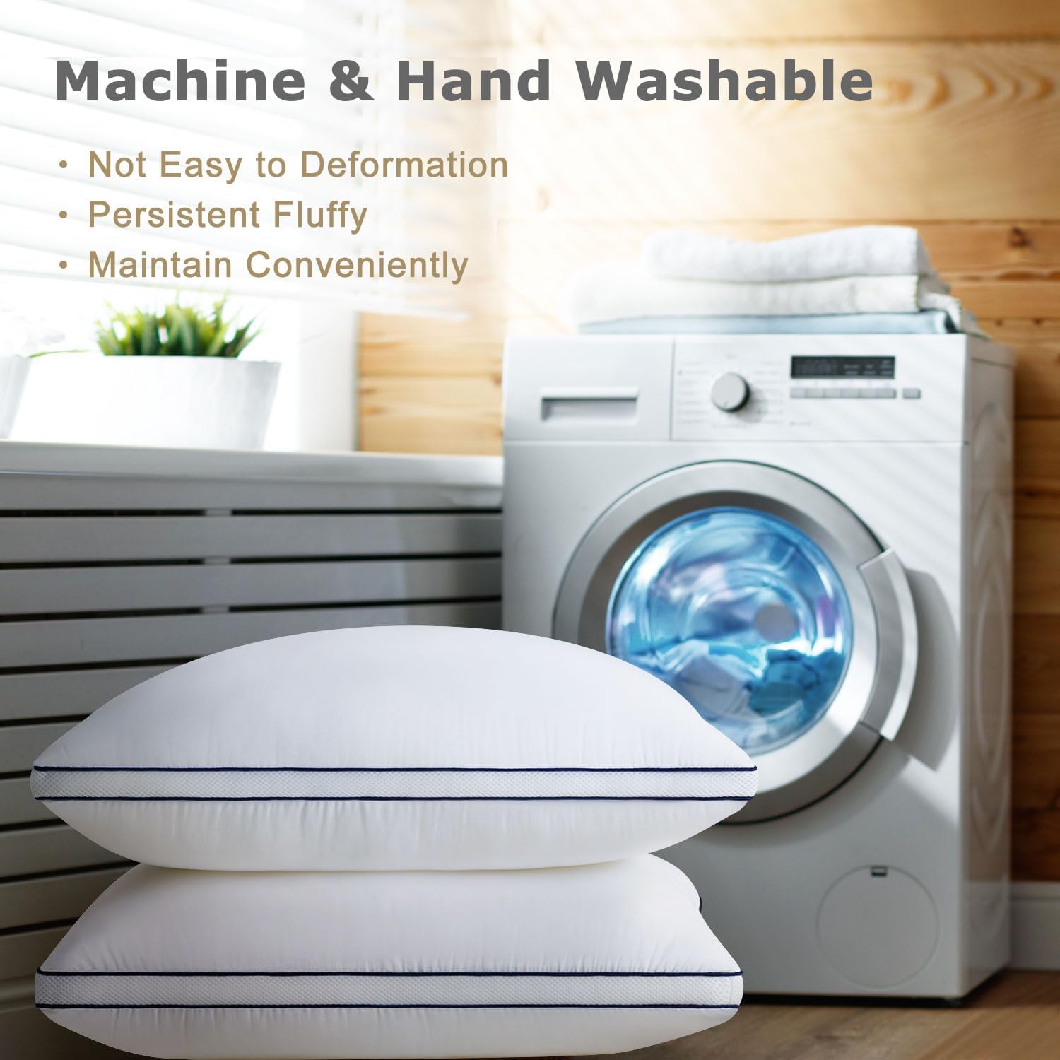【Anti-Staining & Easy to Care】After prolonged use, fluffy pillows regularly to keep their shape. The bed pillows are machine washable and always look new after washing. Just put them in a washing machine and wash them gently with cold water and dry them at a low temperature.