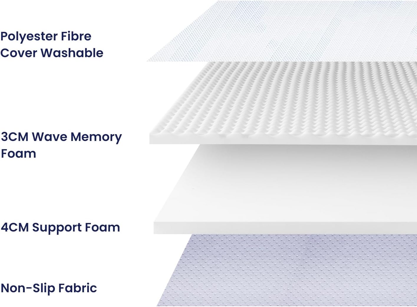7CM MEMORY FOAM TOPPER – 2CM Wavy Slow Rebound Memory Foam + 5CM Support Foam helps provide adaptive comfort and support. Using the right memory foam for your body enhances the quality of your sleep.