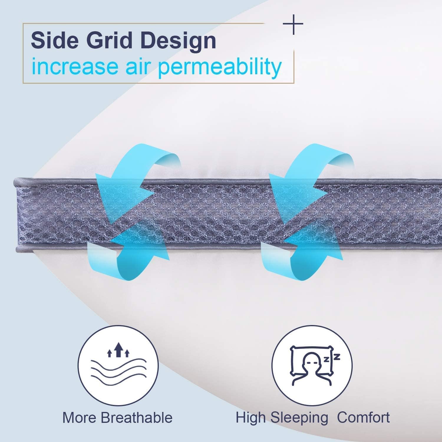 The biggest feature of sleeping pillows are breathability.Whether it’s the inner filling or the outer fabric, we have selected carefully for the purpose of breathability and comfort, which improves the overall comfort of the pillow; we also design the side of the pillow into a grid, it greatly increases the air permeability