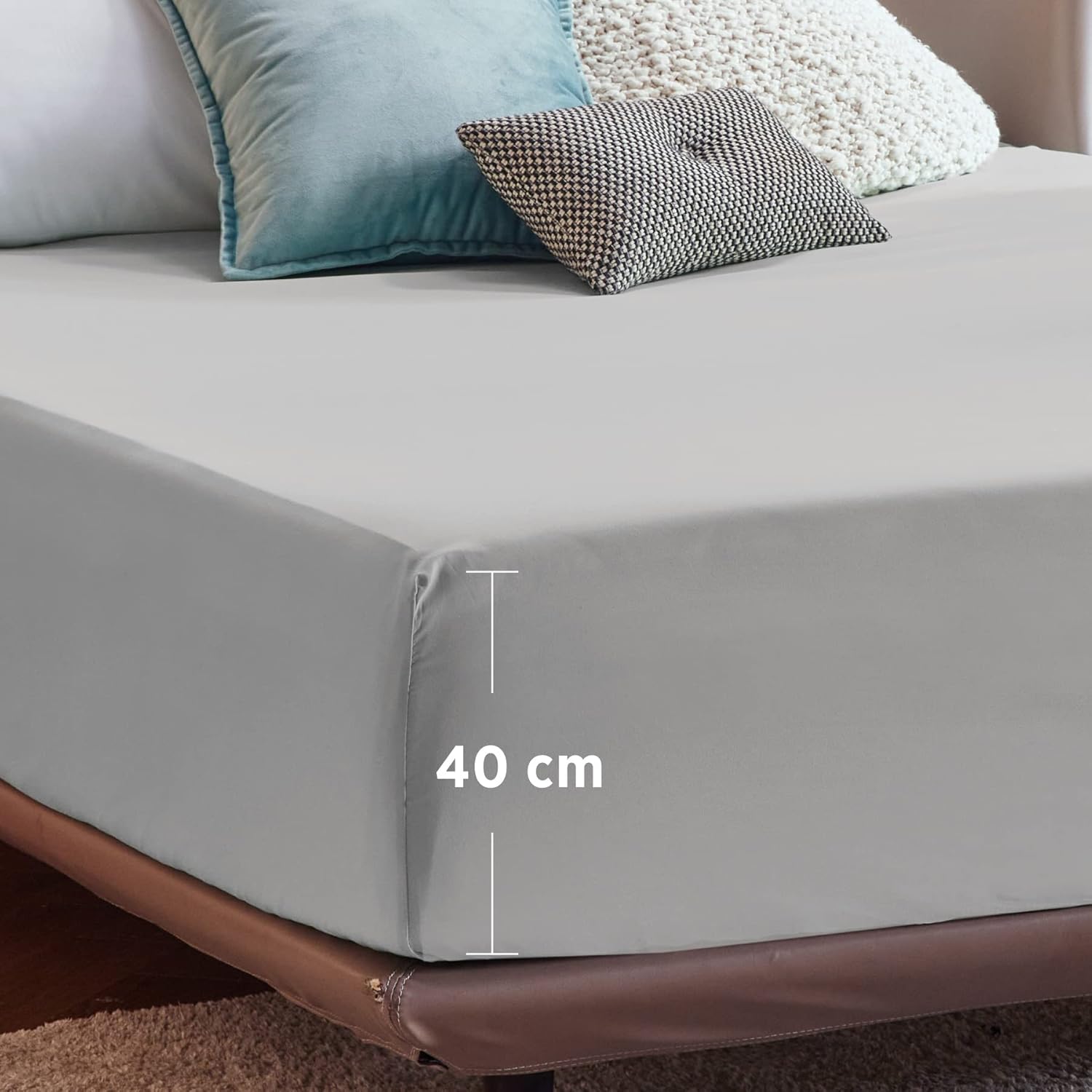 Bedsure Double Fitted Sheet Deep – Bed Sheets Extra Deep Pocket 16 inch (40 cm) made of Soft Brushed Microfiber for Double Bed, Grey, 135x190cm