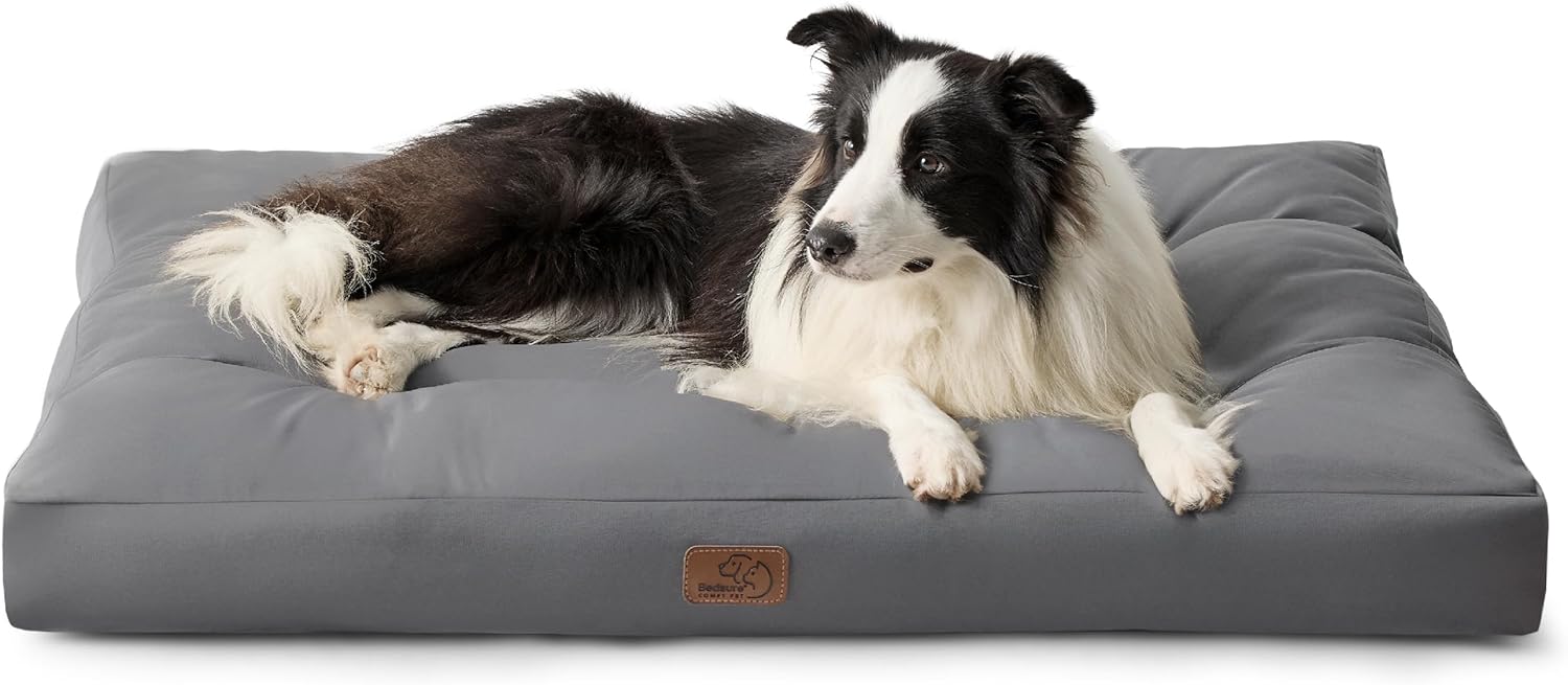 Bedsure Waterproof Dog Bed Large – Washable Dog Bed Mattress with Oxford Fabric, Pet Pillow Cushion for Crate, Grey Dog Mat Outdoor, 91x68x10cm