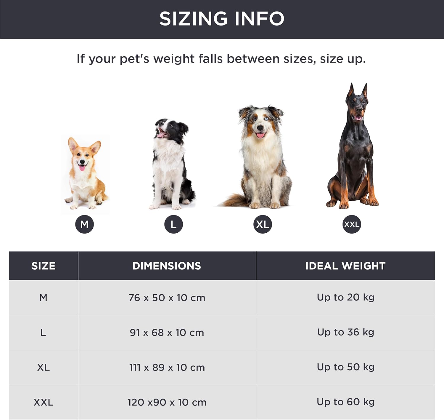 The Bedsure dog bed comes in the sizes medium, large and extra-large for dogs and cats. The grey dog mat is made of waterproof Oxford fabric. Petsure is part of the Bedsure brand, offering professional pet supplies to create a cosy home for your pets.