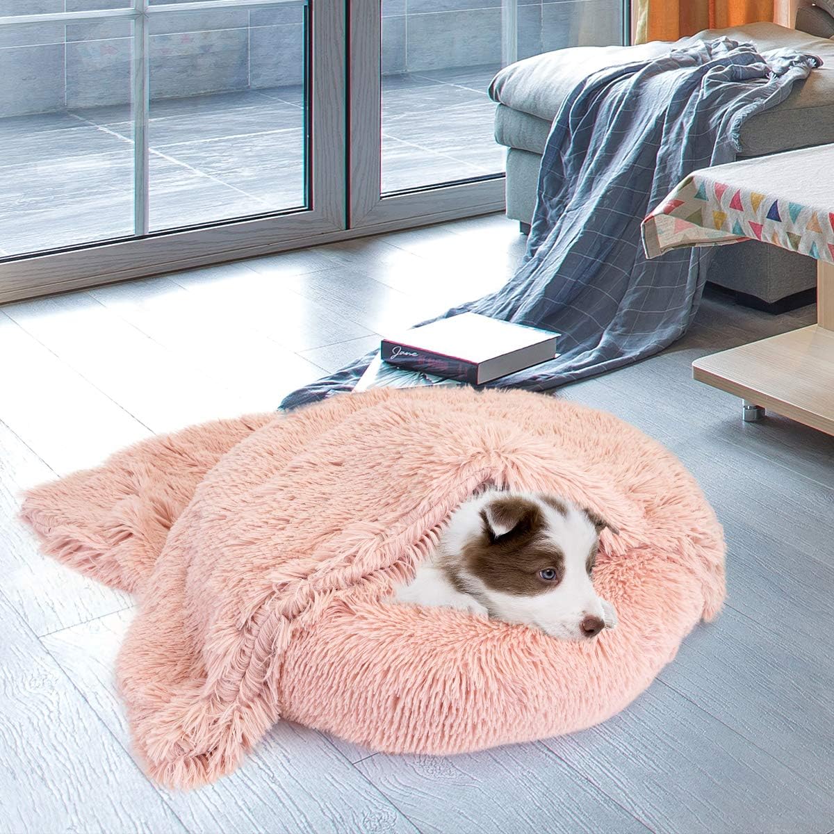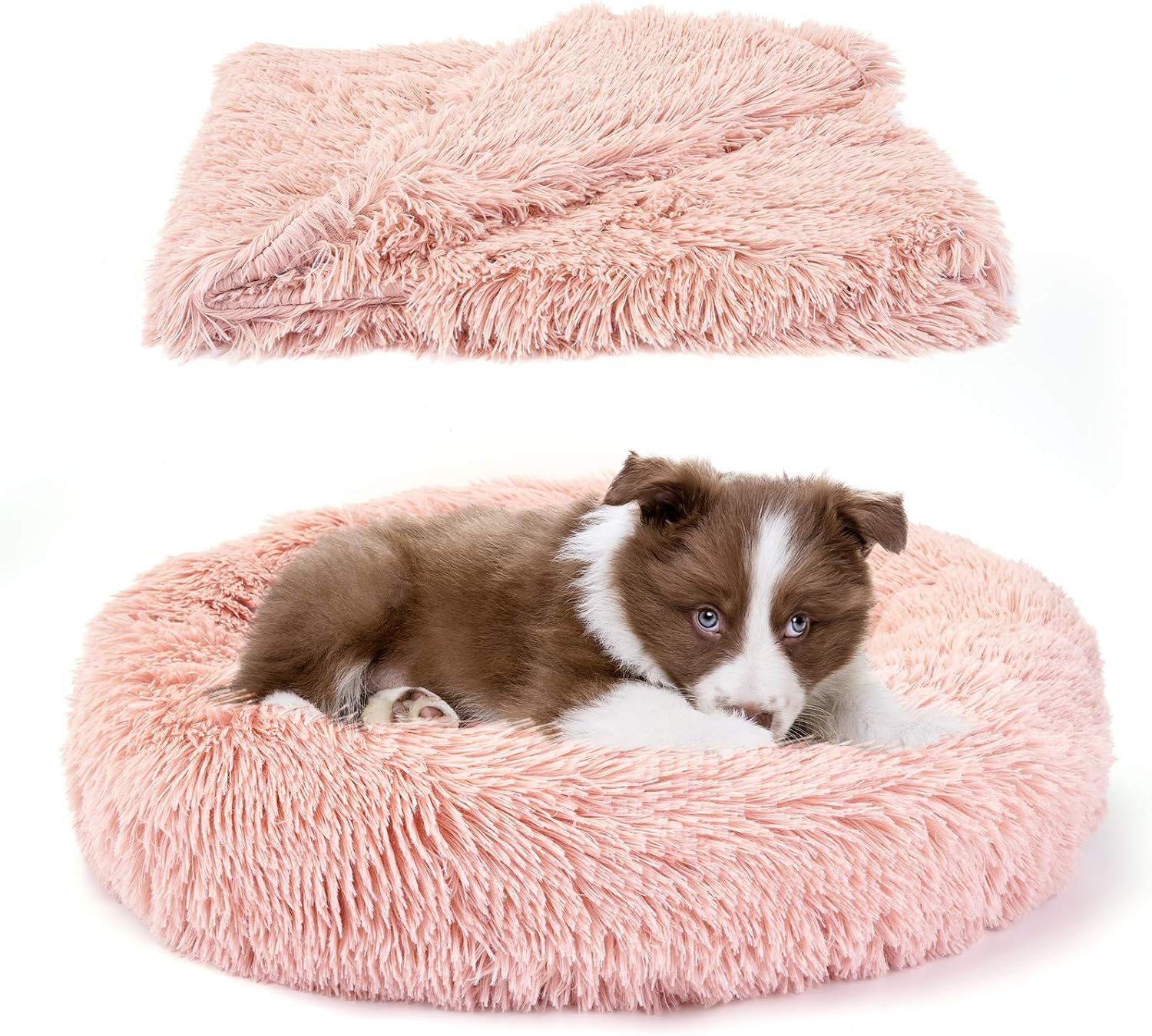 Belababy Dog Cat Donut Bed with Soft Blanket, Calming Dog Cat Bed Small with Soft Plush, Puppy Bed Dog Beds with Fluffy Cuddler, Anti Anxiety Dog Bed with Anti-Slip Bottom (S, Pink)