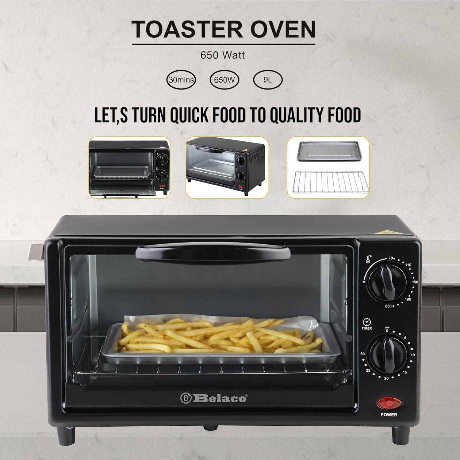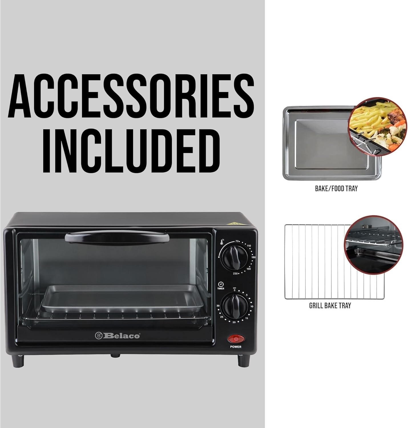 Belaco Mini 9L Toaster Oven Tabletop Cooking Baking Portable Oven 650w 100-250° Stainless steel heating tube incl. baking tray & wire rack