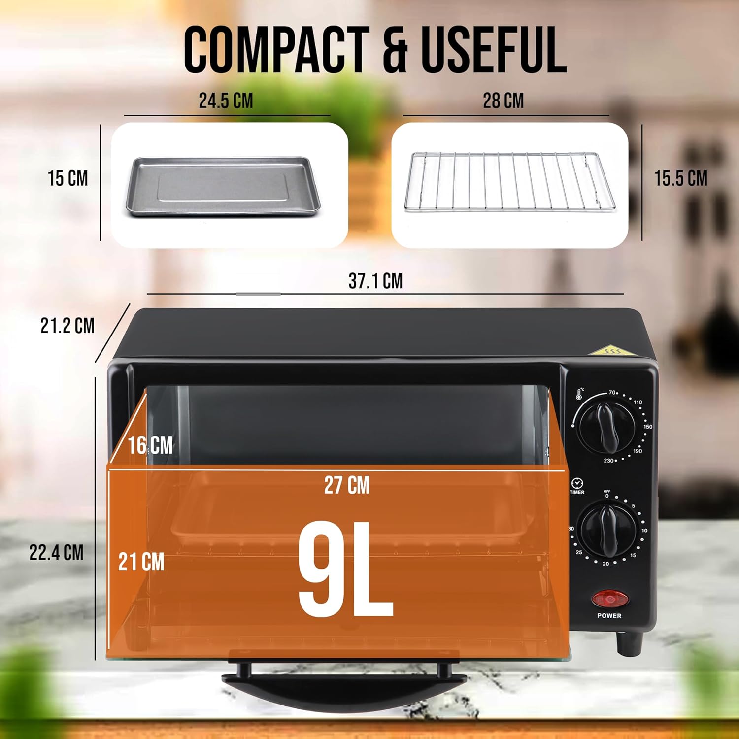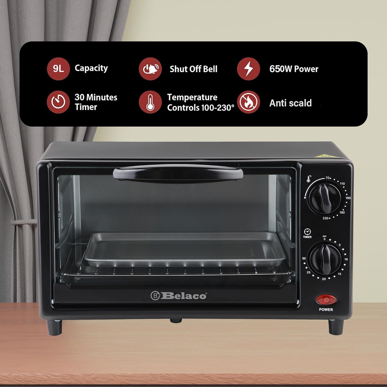 Belaco 9L mini oven model: BTO-108N is compact and space saving, this mini oven is great if you have limited space in your kitchen, caravan, office etc