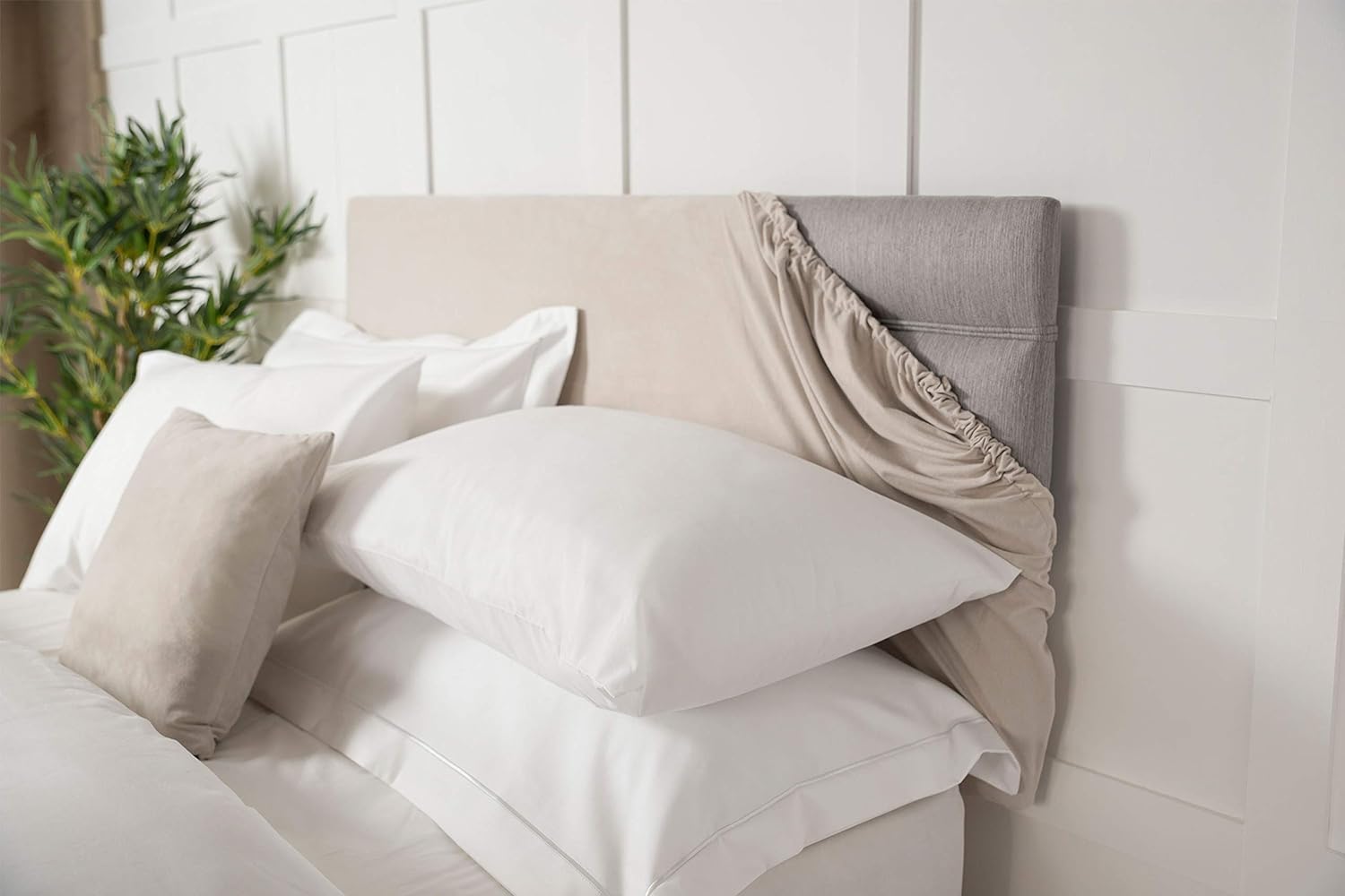 Belledorm Headboard Wrap – Transforms a drab looking bed base – Luxury Faux Suede (Linen, Super King)