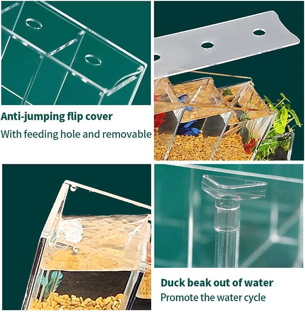 【Add fun to life】: Our aquarium is specially designed for Betta Fish. We divide them into four rooms just like the apartment. With this small fish tank, you can enjoy the fun of fish farming and make your life colorful.Contains water pump.