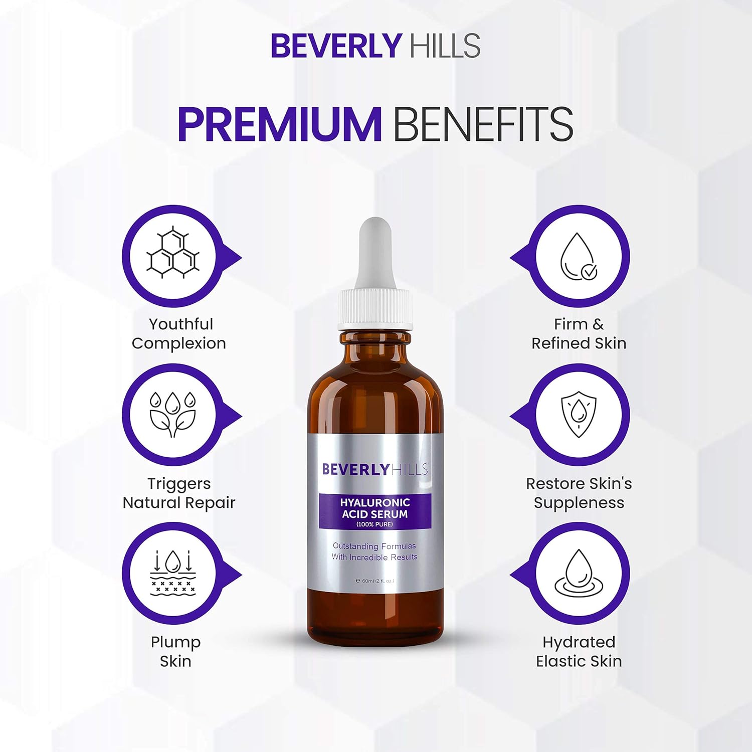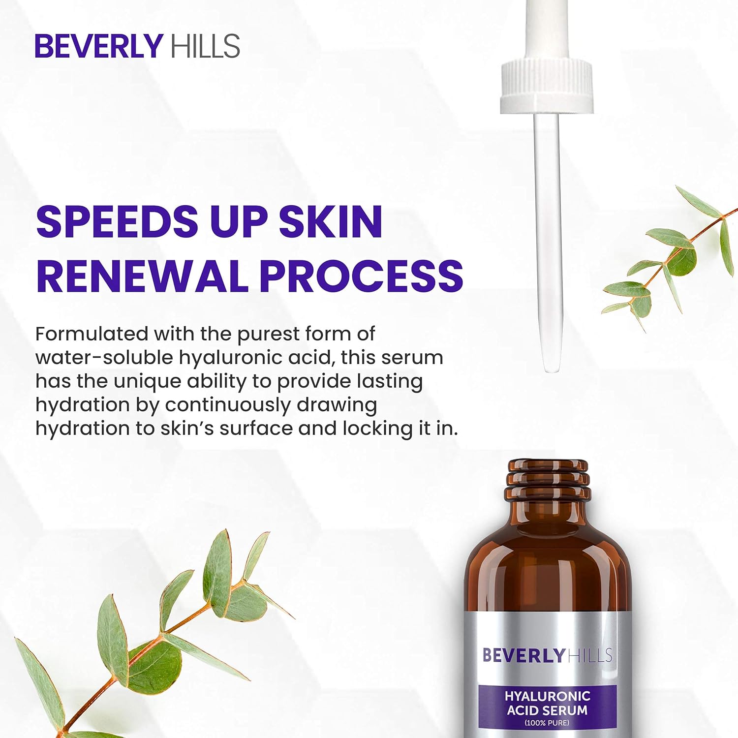 Beverly Hills 100% Pure Hyaluronic Acid Serum for Face for Hydrating Skin and Targeting Wrinkles | Anti Aging Hyaluronic Acid Moisturizer for Intense Hydration | 60mL, 150 Day Supply