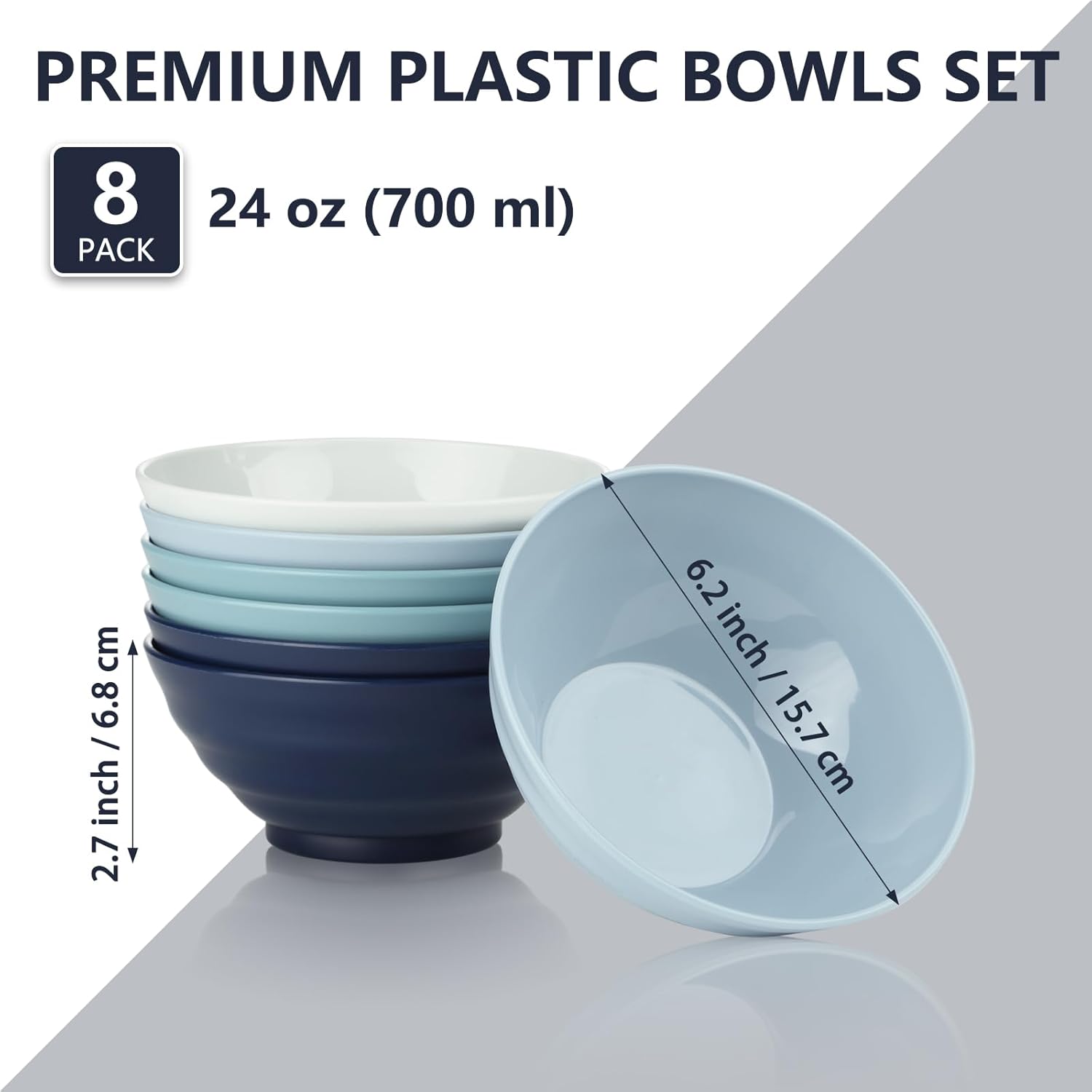 BEWOS Unbreakable Plastic Bowls Set, 8 PCS of 24 OZ Reusable Large Bowls, Eco Friendly Bowls, Microwave & Dishwasher Safe Bowls for Serving Soup, Ramen and Salad, Morandi color scheme and all Purpose.