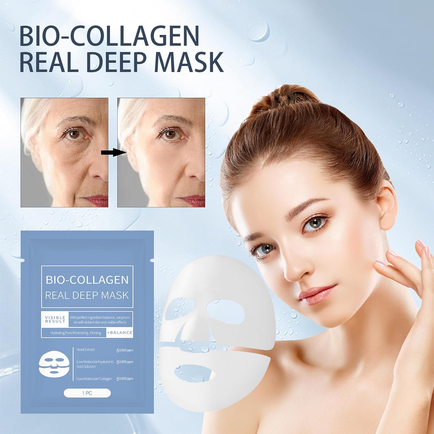 Bio Collagen Real Deep Mask,Deep Hydrating Collagen Mask,Collagen Face Mask Overnight,Pure Collagen Reverse Film Volume Peel Off Mask(4pcs)