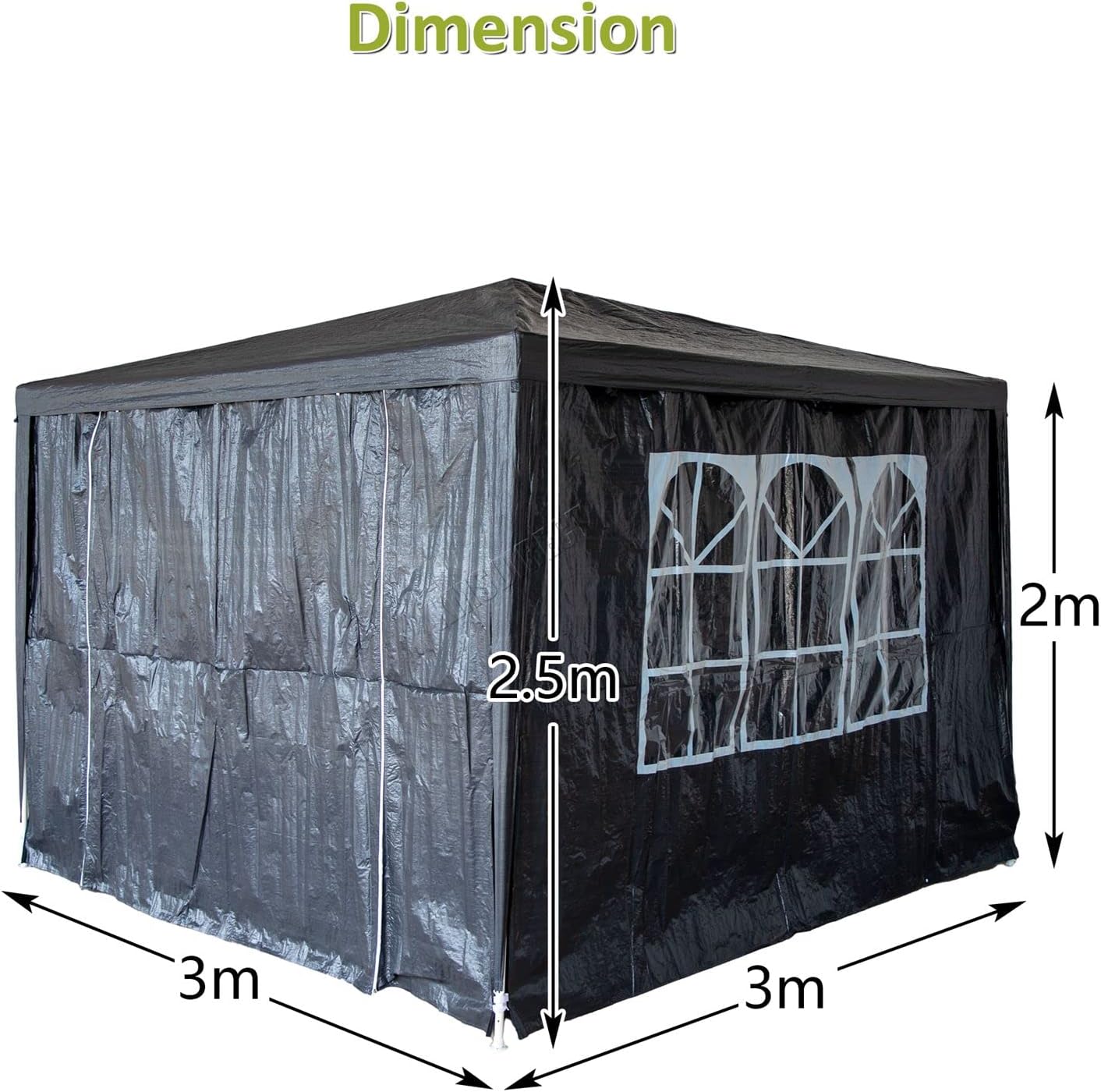 BIRCHTREE 3x3m Garden Steel Tube PE Gazebo With 4 Pieces Sidewalls Zippers 2 Windows Canopy Patio New Party Camping Wedding Tent Shade Waterproof Outdoor Marquee Awning Grey