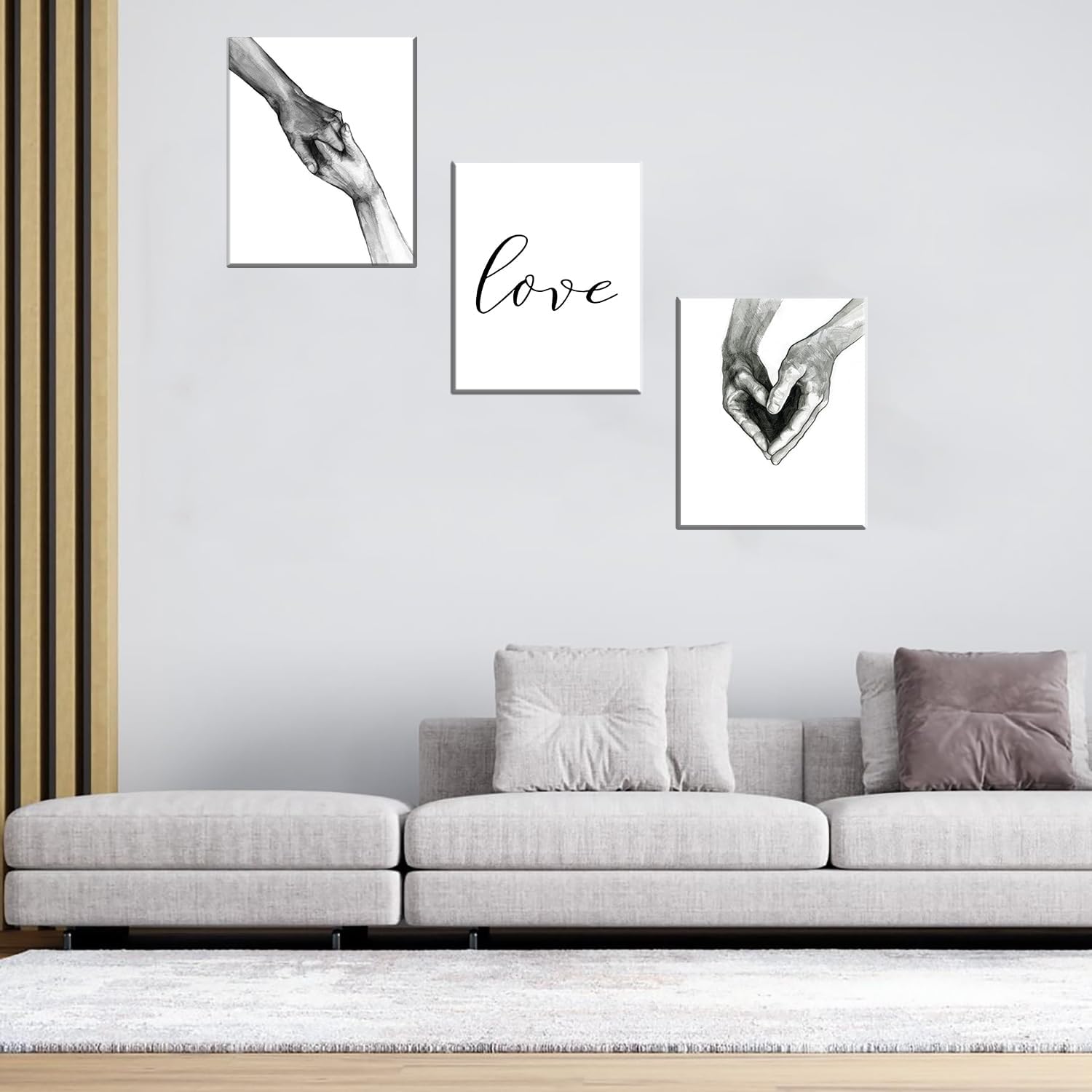 Black and White Canvas Wall Art – Minimalist Hand In Hand Love Painting Simple Picture Artwork Wall Decorations for Beadroom Living Room Bathroom Decorative 12 x 16 Inches Framed Ready to Hang
