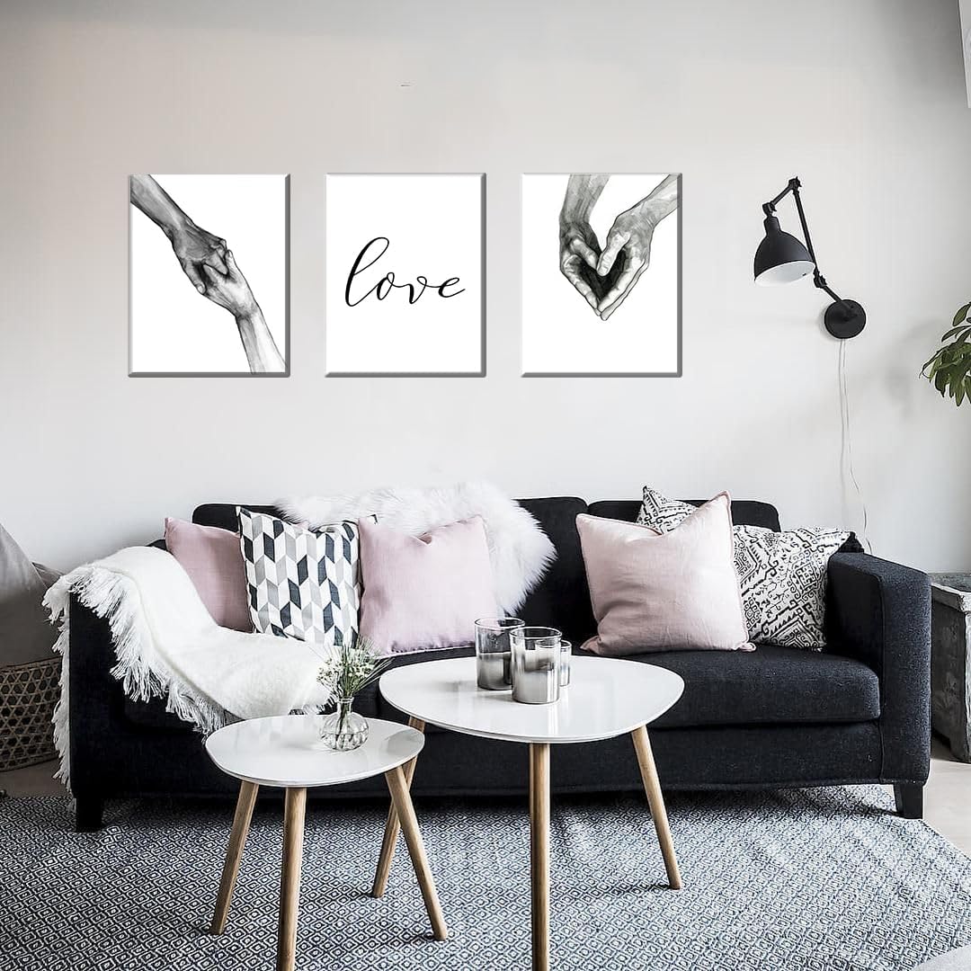2. What You Receive: You will receive 3 pieces 12×16 inches framed black and white love prints canvas painting, 3 non-marking nails and 3 steel nails which will help you hang them on the wall easily, a product manual and an installation diagram which will guide you how to put them on the wall.