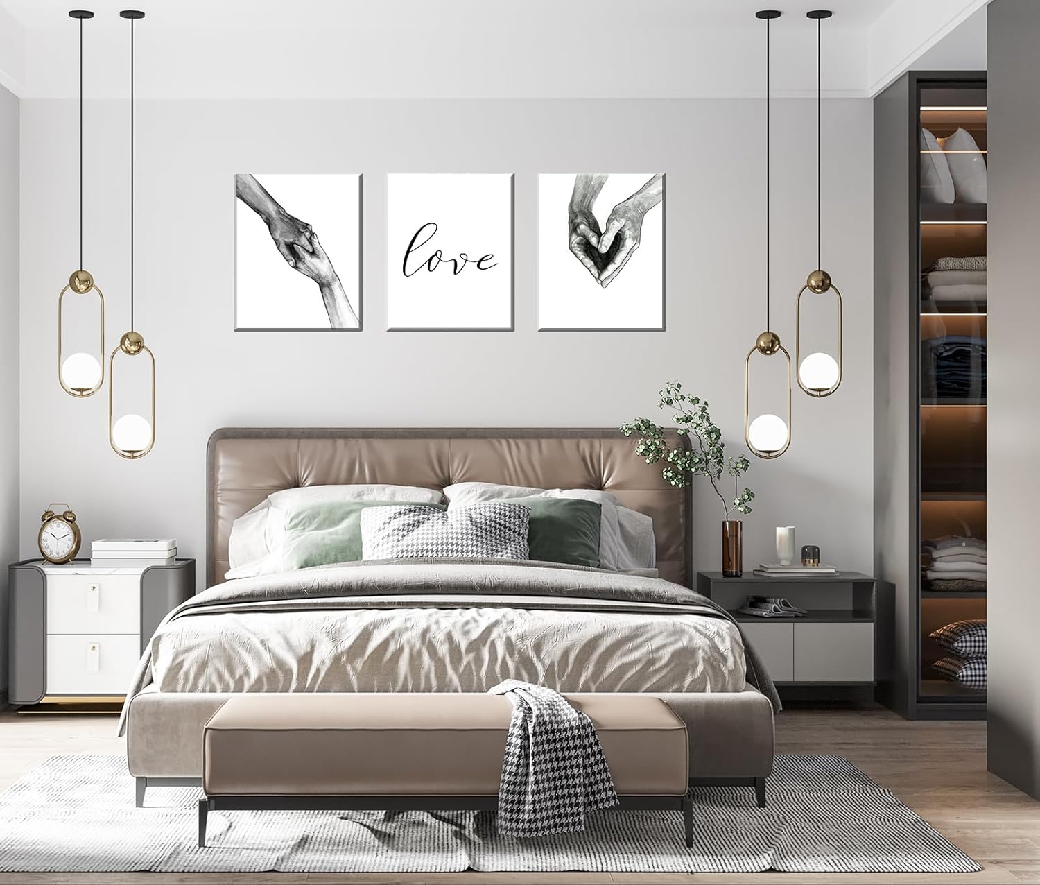 “Black and White Canvas Wall Art – Minimalist Hand In Hand Love Painting Simple Picture Artwork Wall Decorations for Beadroom Living Room Bathroom Decorative 12 x 16 Inches Framed Ready to Hang
