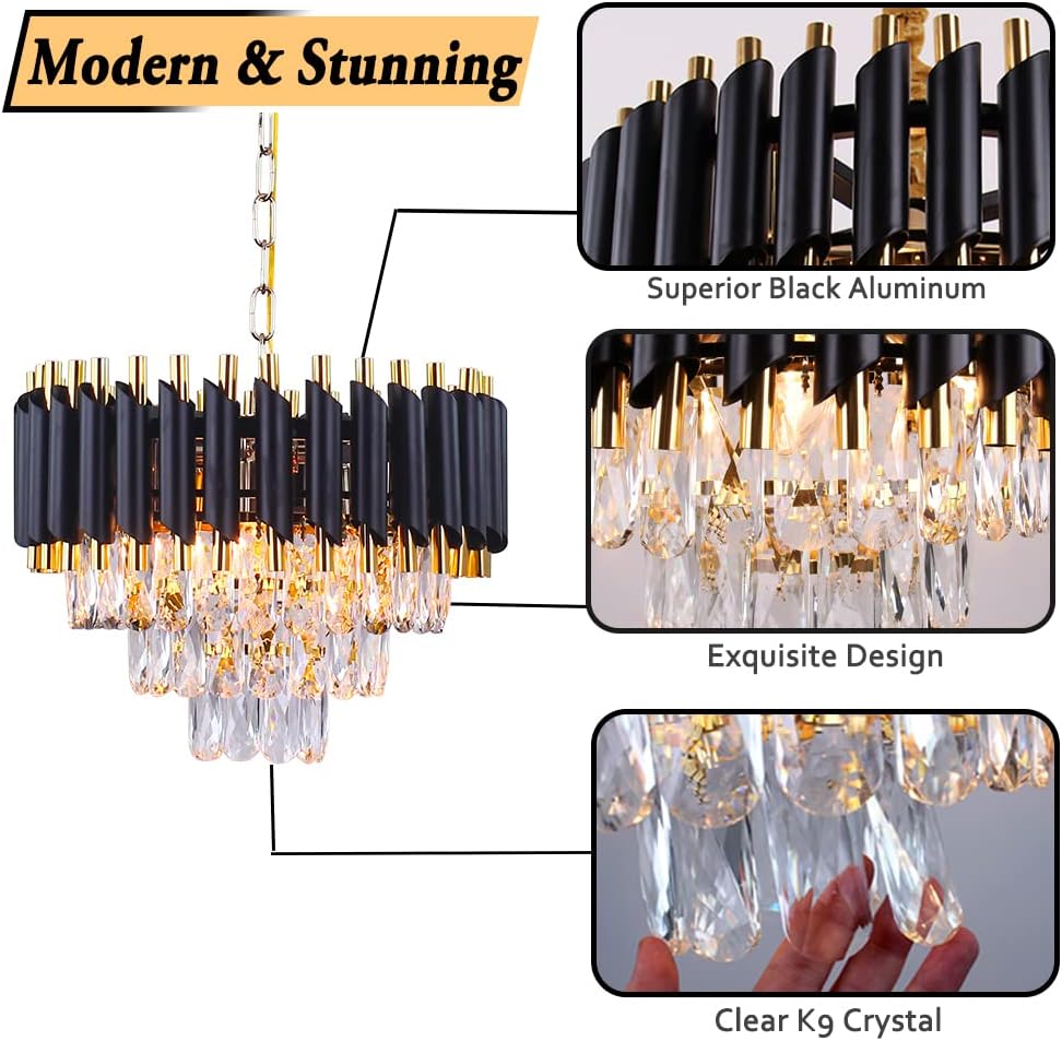 Modern Chandelier Material:K9 Crystals/Aluminum/ Stainless Steel.Three Layers Chandelier Light. Perfect for home decor lighting.