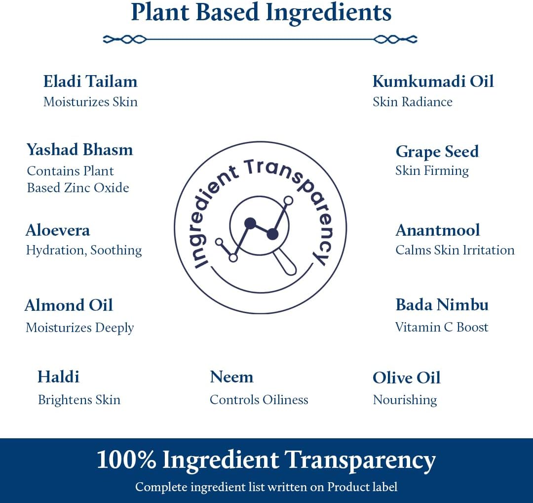 Power of Plant Based SPF: Our day cream, infused with Yashad Bhasma, serves as a natural SPF ingredient, guarding your skin against damaging UVA and UVB rays for a glowing skin.