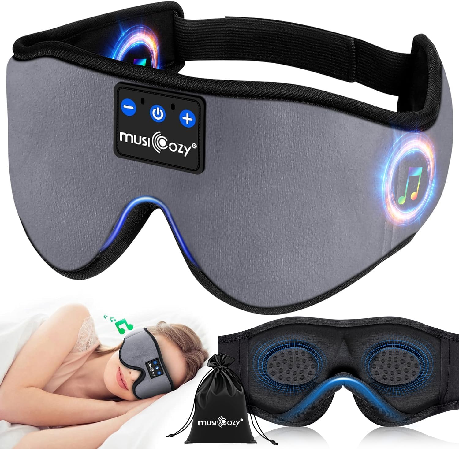 Bluetooth Sleep Mask,Musicozy 3D Sleep Headphones for Side Sleeper,Soft Eye Mask with Sleeping Headphones with Microphone,14Hrs Playing Music Sleep Aids Cool Gadgets for Men/Women/Nap/Relax/Travel