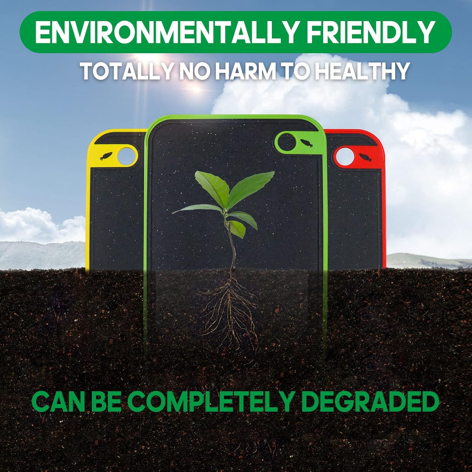 🥝【ELEGANT COLOUR CODED】The different color boards are suitable for cutting different foods, including meat, fish, fruit, vegetables, etc. Such as “RED” represents all kinds of meat food. “GREEN” represents all kinds of fruit food. “YELLOW” represents various vegetable foods. This design can make chopping boards for kitchens more sanitary and prevent cross-contamination. In addition, the plastic chopping boards can be used as Serving Trays, Charcuterie Boards, Bread Boards, Cheese boards, and so on.