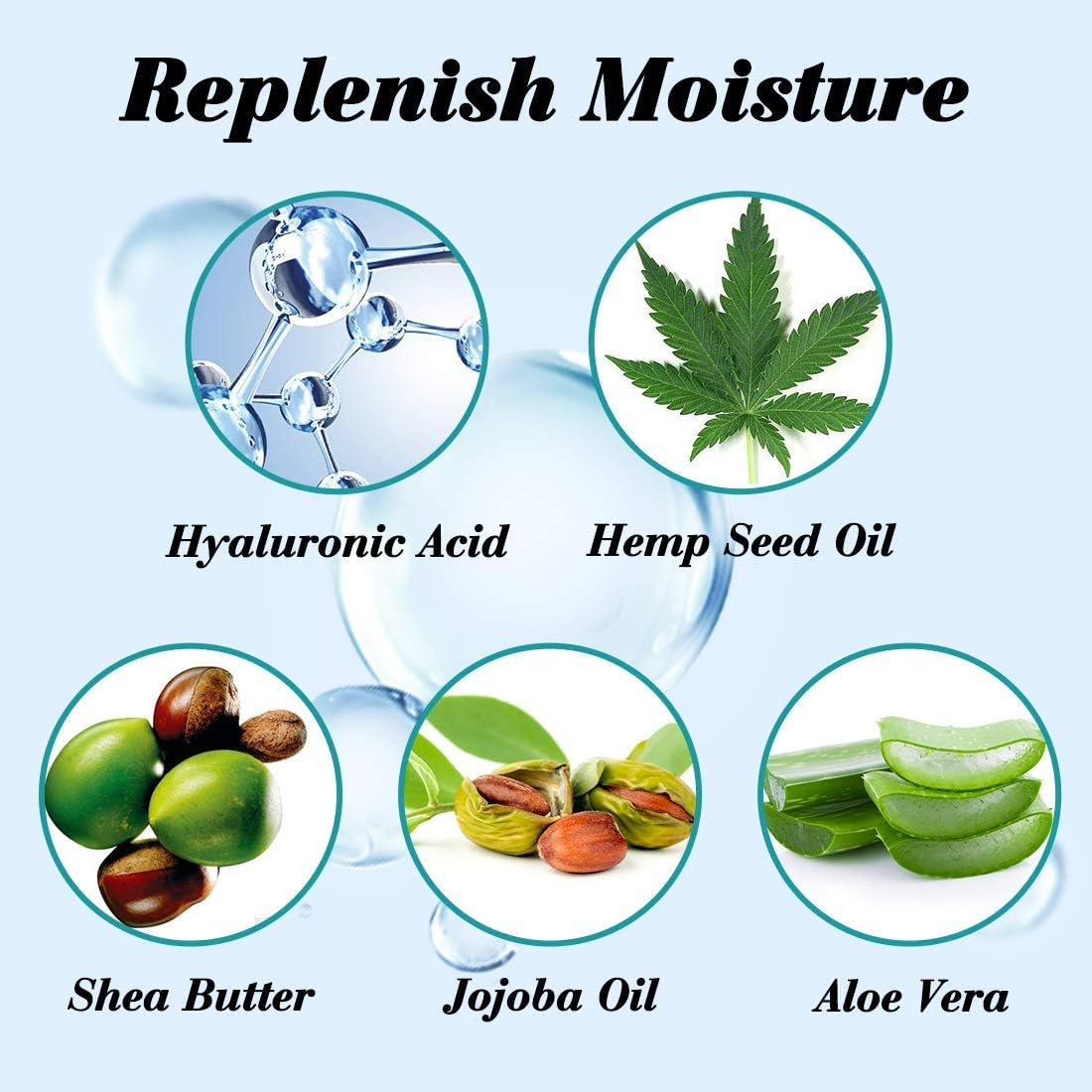 This body cream for dry and sensitive contains hyaluronic acid, a natural moisturizer found in the skin, can deeply moisturize the skin, reduce dry skin, peeling, itchy, rough and dull skin, make the skin last smoother and firmer. The moisturizer is suitable for all ages to apply on legs, arms after bathing. It contains no artificial flavors, non-greasy, easily absorbed, does not block pores, can moisturize and soothe sensitive skin.