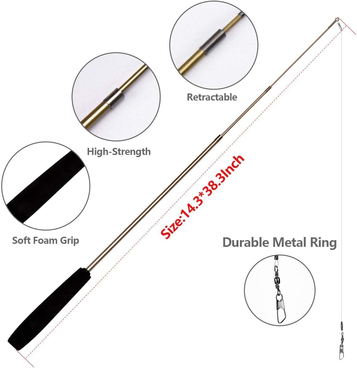 Wand Size:14.3*38.3 InchMax Length:38 InchMaterial: Foam Grip+Durable MetalAdvantages: High-Strength+Retractable