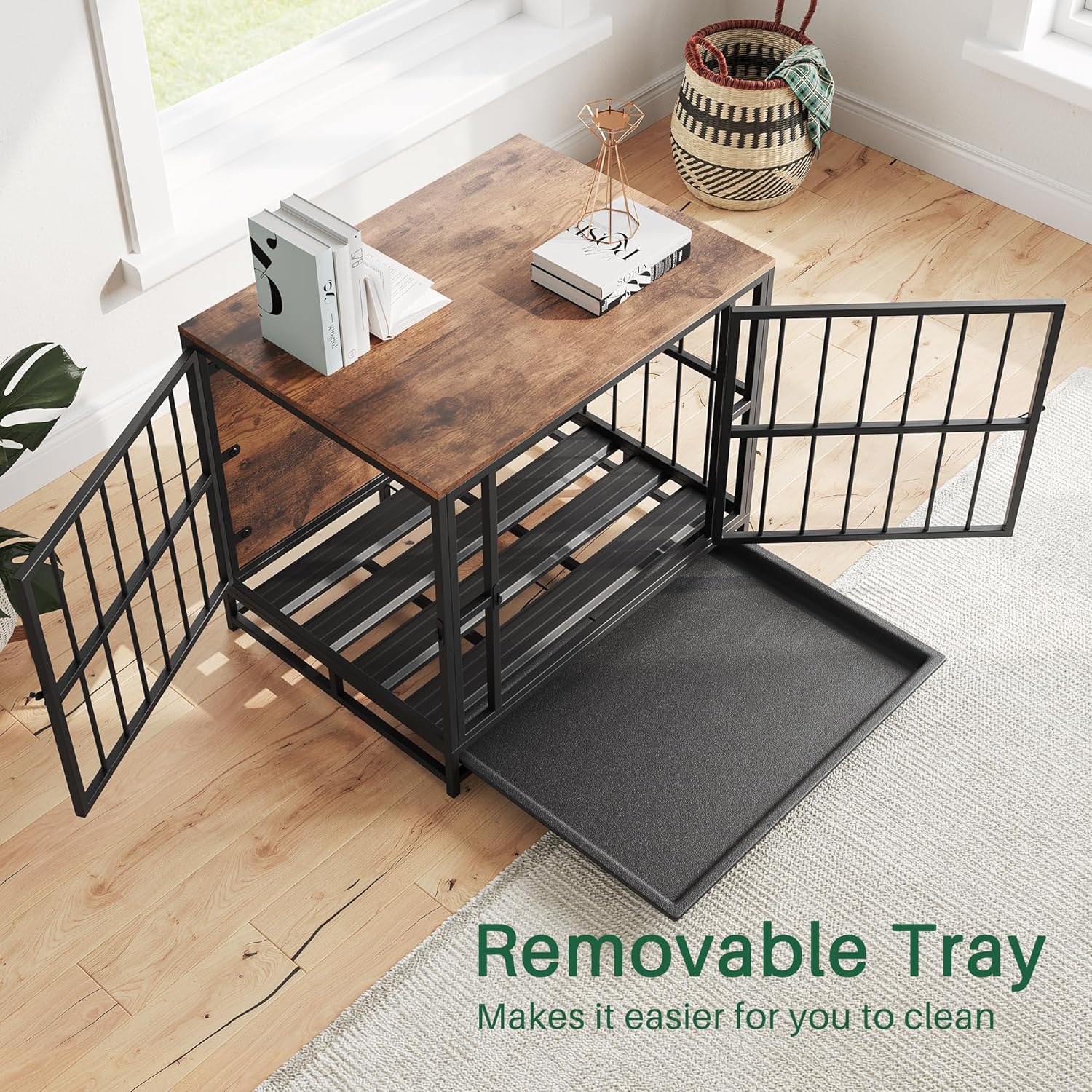 【Double Doors and Removable Tray】 This furniture-style dog cage has front and side openings for access.The removable tray makes cleaning up unwanted mess in your dog crate as quick as possible.