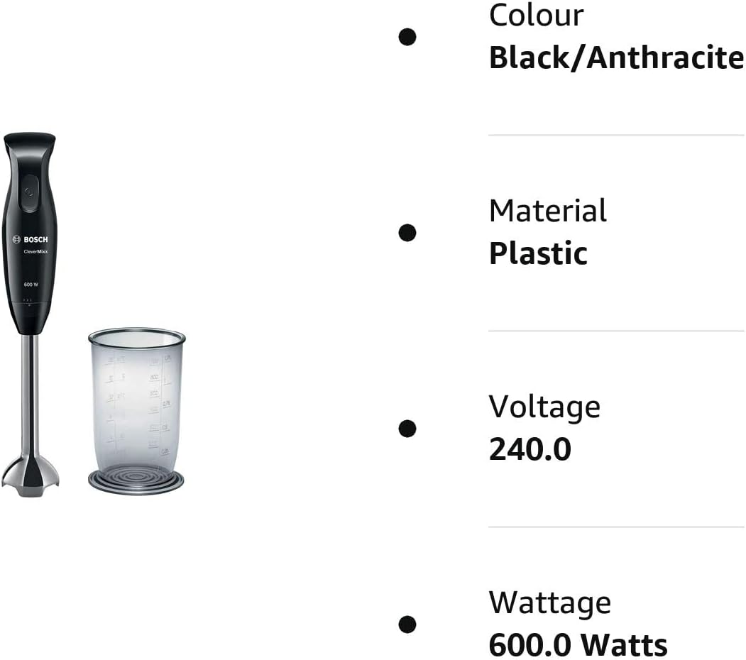 ITEMS DELIVERED: 1 x Bosch CleverMixx Hand Blender with stainless steel mixing wand, mixing/measuring beaker, 600 W motor