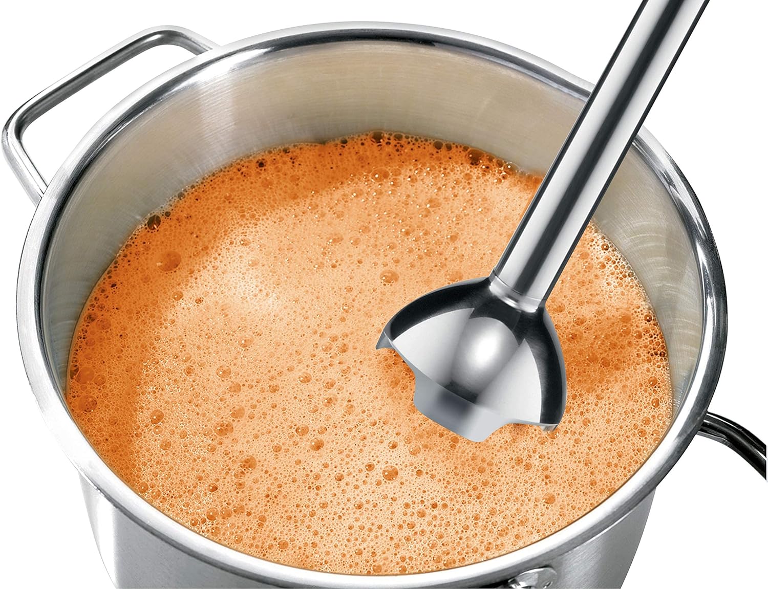QUATTRO BLADES: The stick blender features a durable, extra-sharp QuattroBlade for fine blending with anti-suction technology to avoid splashes