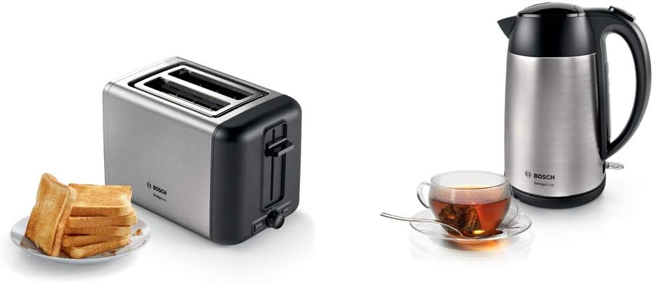 The range of Bosch Designline kettles and toasters have been designed to create a perfect matching set across the range including colours, styles and materials, that will look good in any kitchen. Choose between a 2 or 4 slot toaster.