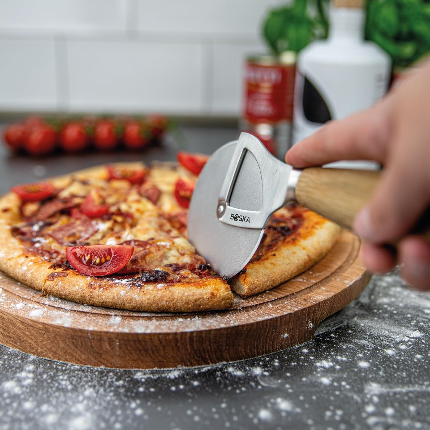 Boska Pizza Cutter Oslo+ / Non-stick BSF™ / Does not Rattle/Very Sharp/Stylish/Oak & Stainless Steel