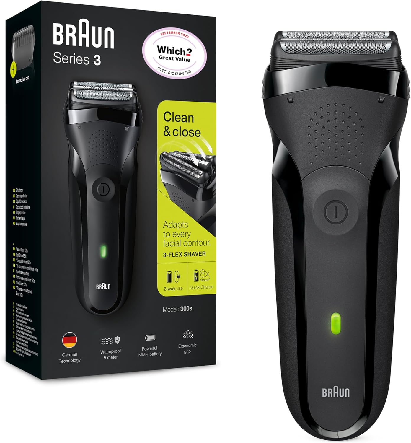 Braun Series 3 Electric Shaver For Men with Precision Beard Trimmer, Electric Razor for Men, UK 2 Pin Plug, 300, Black Razor