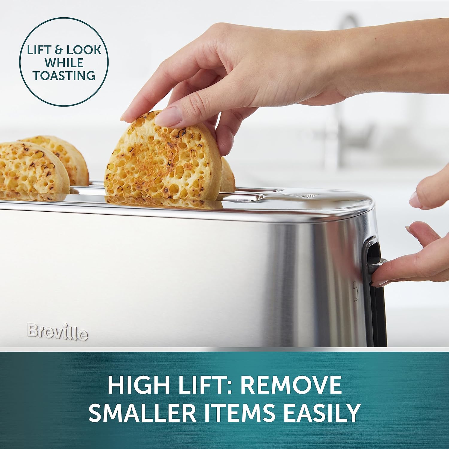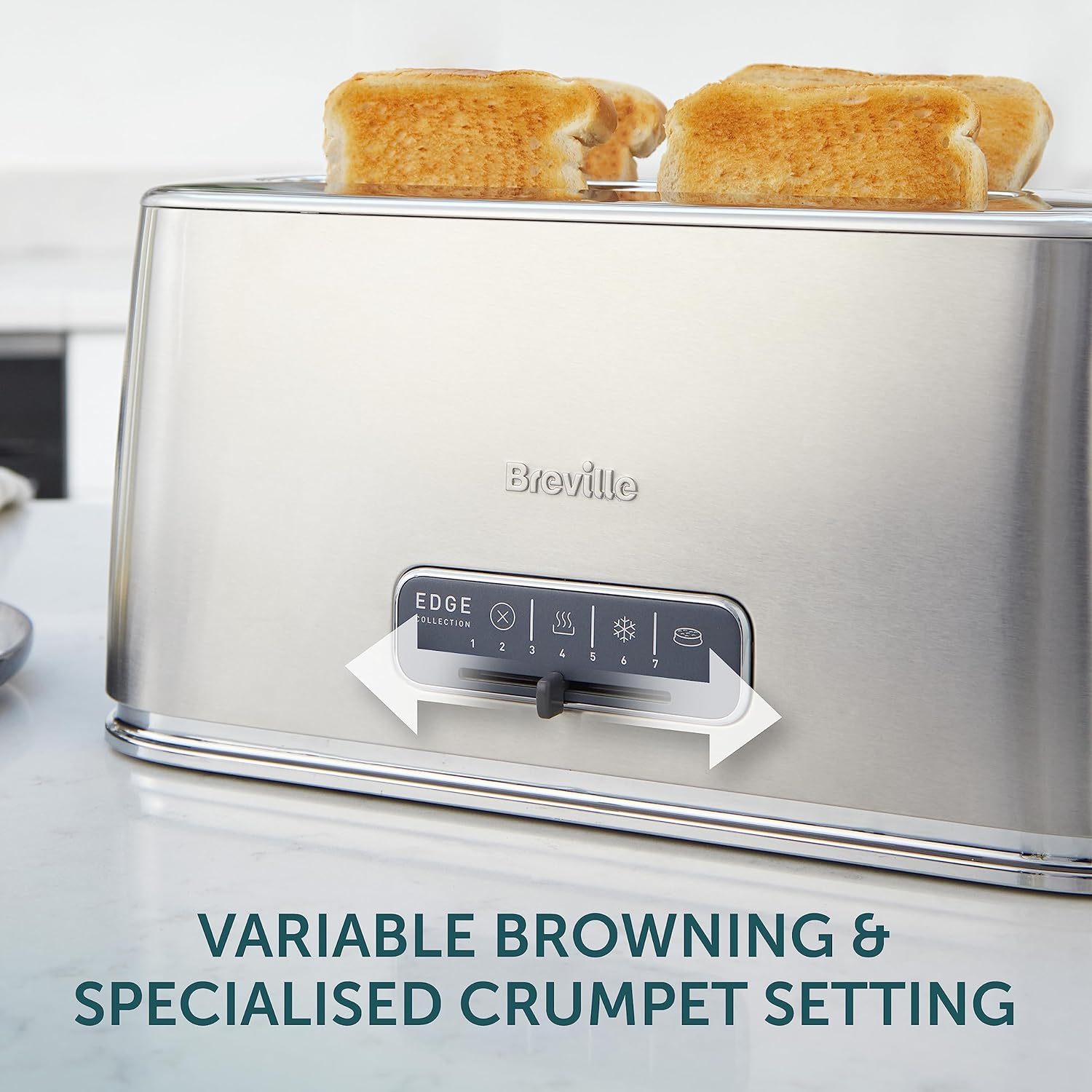 Breville Edge Silver 4-Slice Toaster with Extra Long Slots and High-Lift | Brushed Stainless Steel [VTR023]