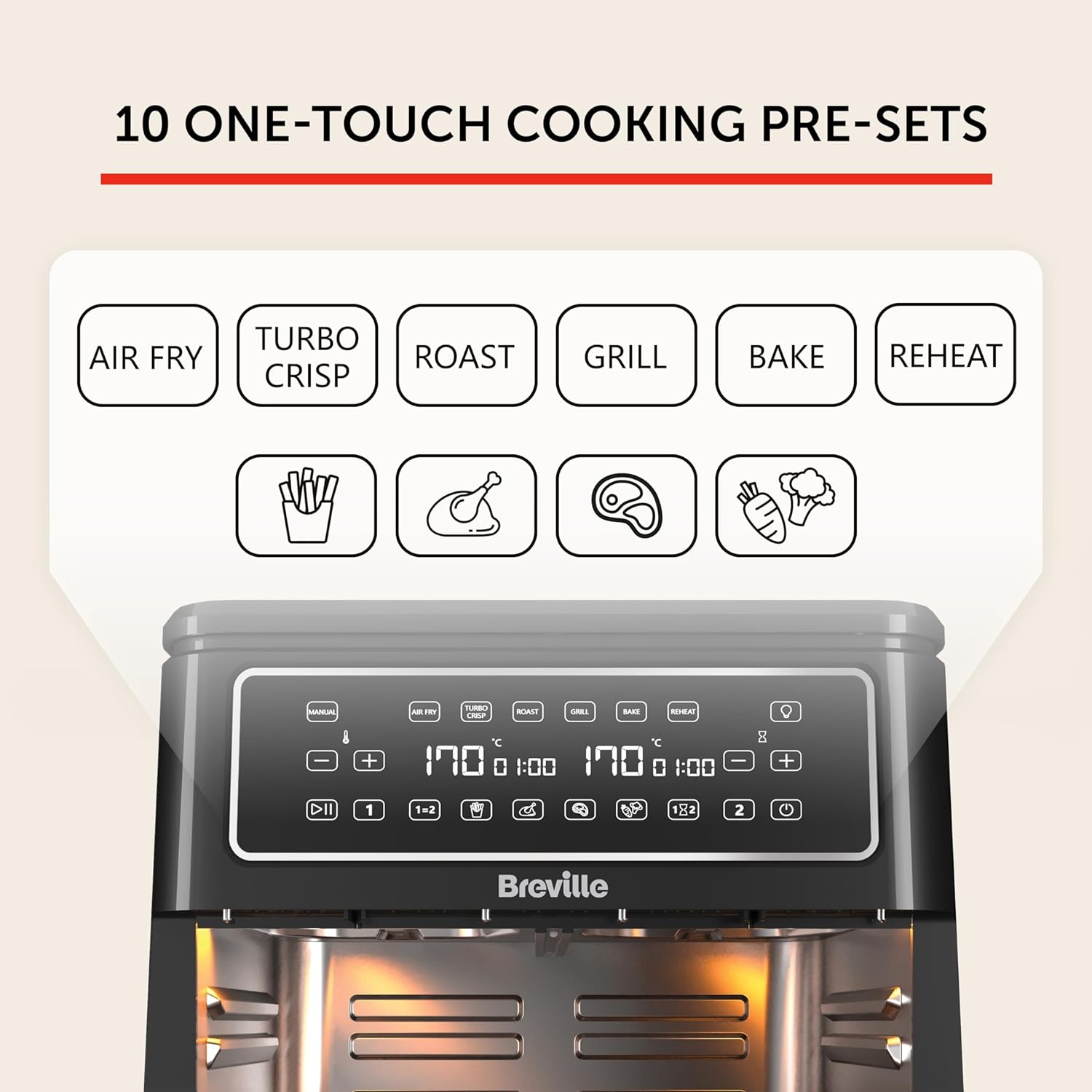 HEALTHY, TASTY MEALS: This extra large air fryer uses 360° air circulation and 99.5% less oil than standard 3 L Breville fryers for crispy, delicious results every time