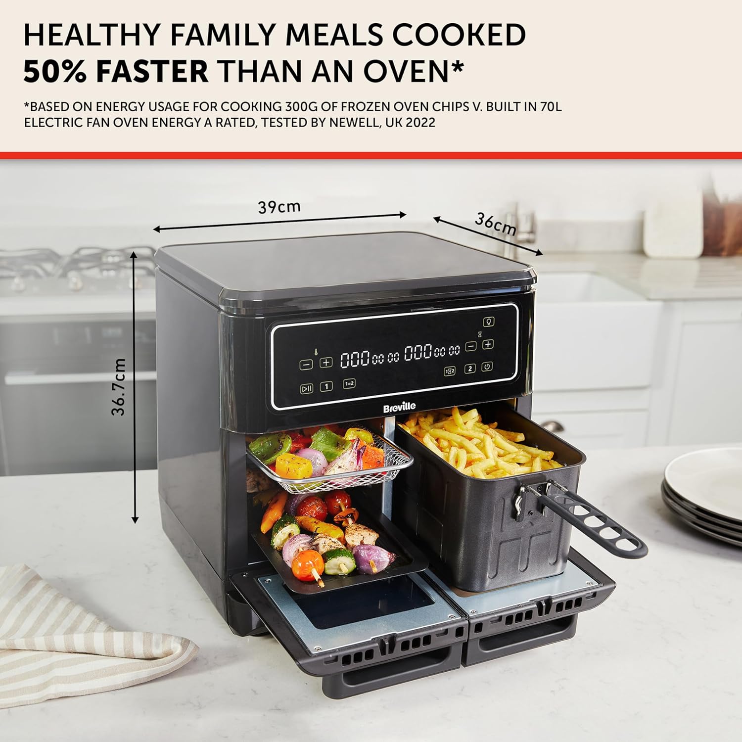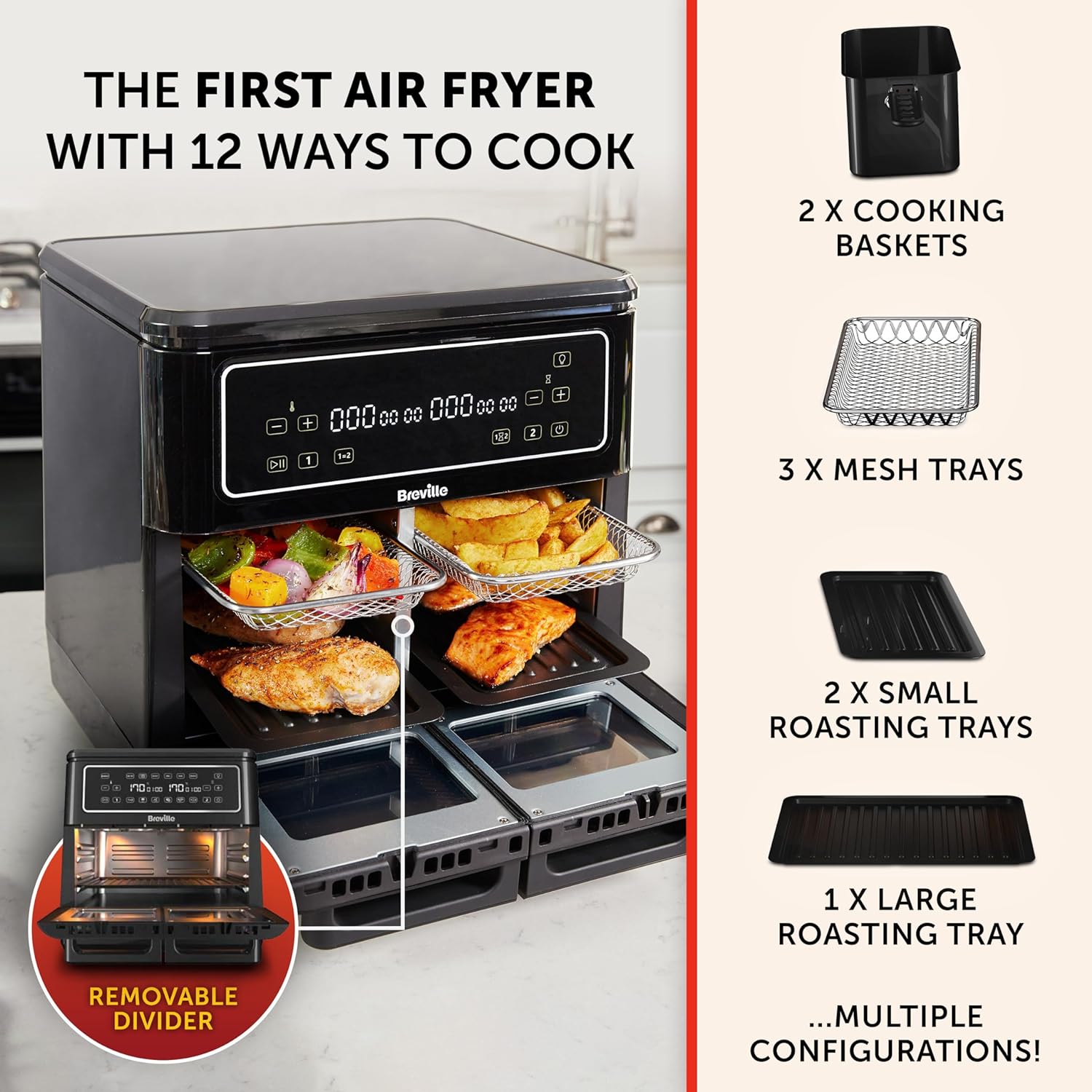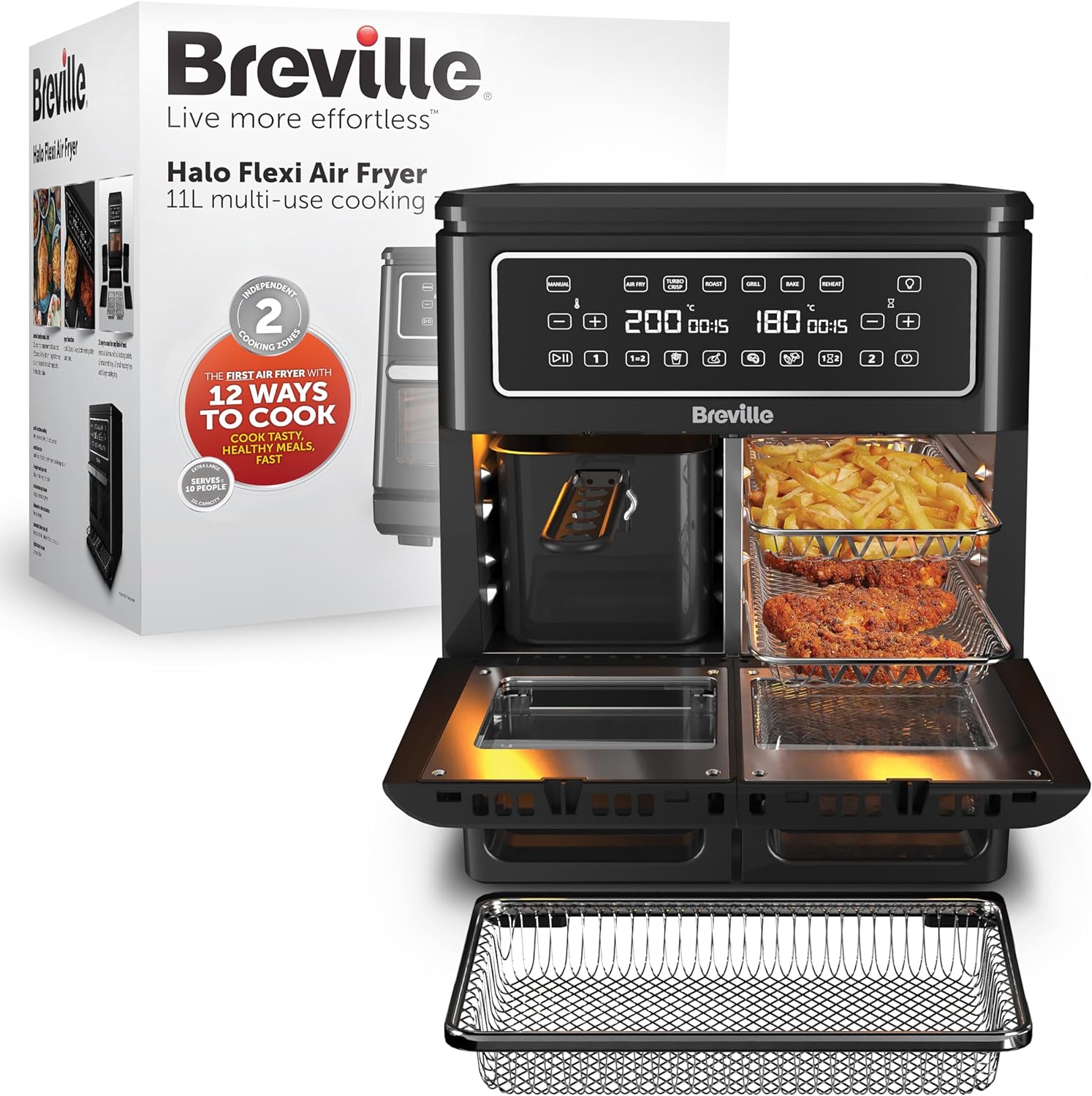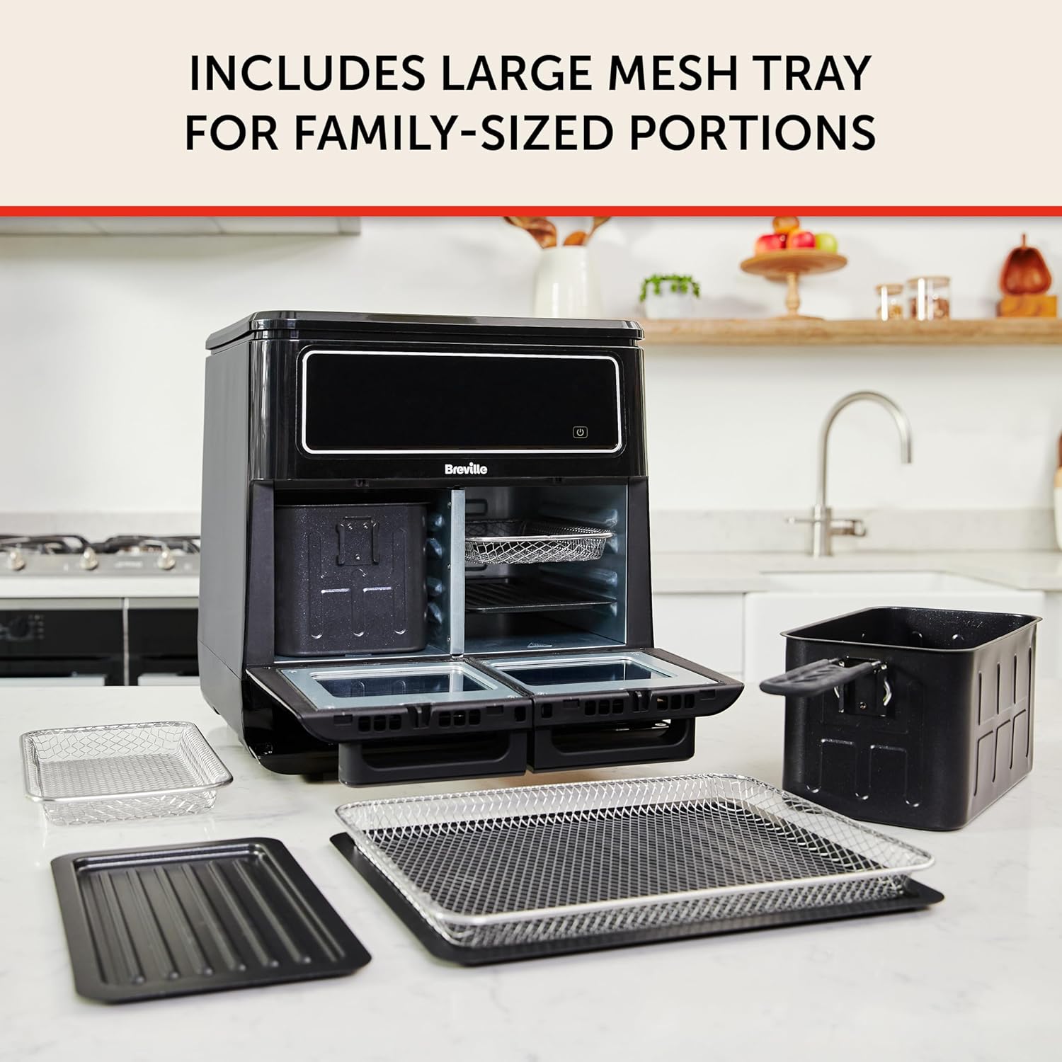 Breville Halo Flexi Air Fryer & Large Mesh Tray, Digital Dual Air Fryer Oven, 11L: Serves 10+, Fry, Bake, Grill, Roast & Reheat, 2400 W, Save £65 a Year on Energy Bills*, Black [VDF138]