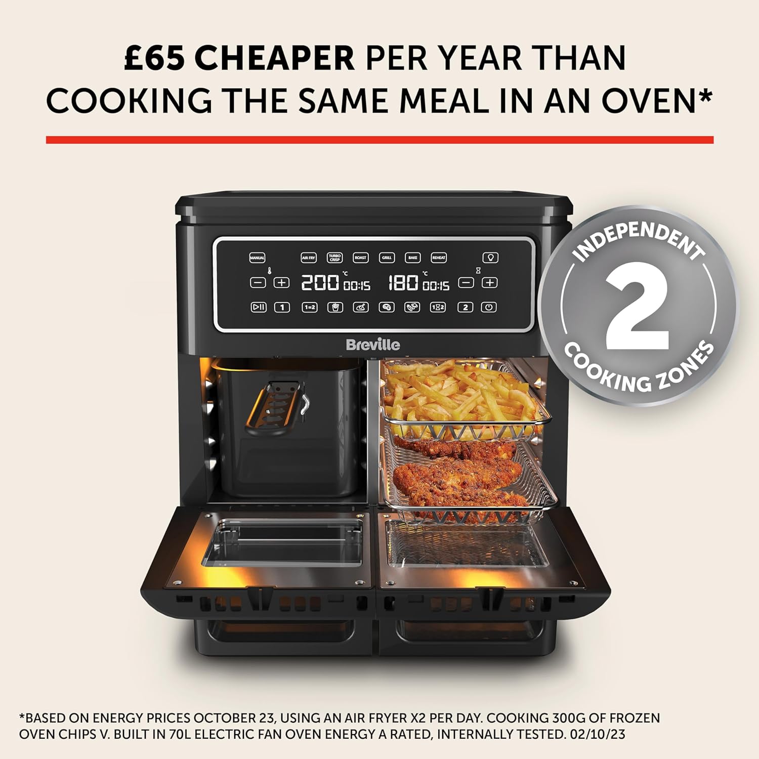 SAVE £65 PER YEAR ON YOUR ENERGY BILLS: Cooking with the Breville Halo Flexi Air Fryer is cheaper than cooking the same meal in an oven*