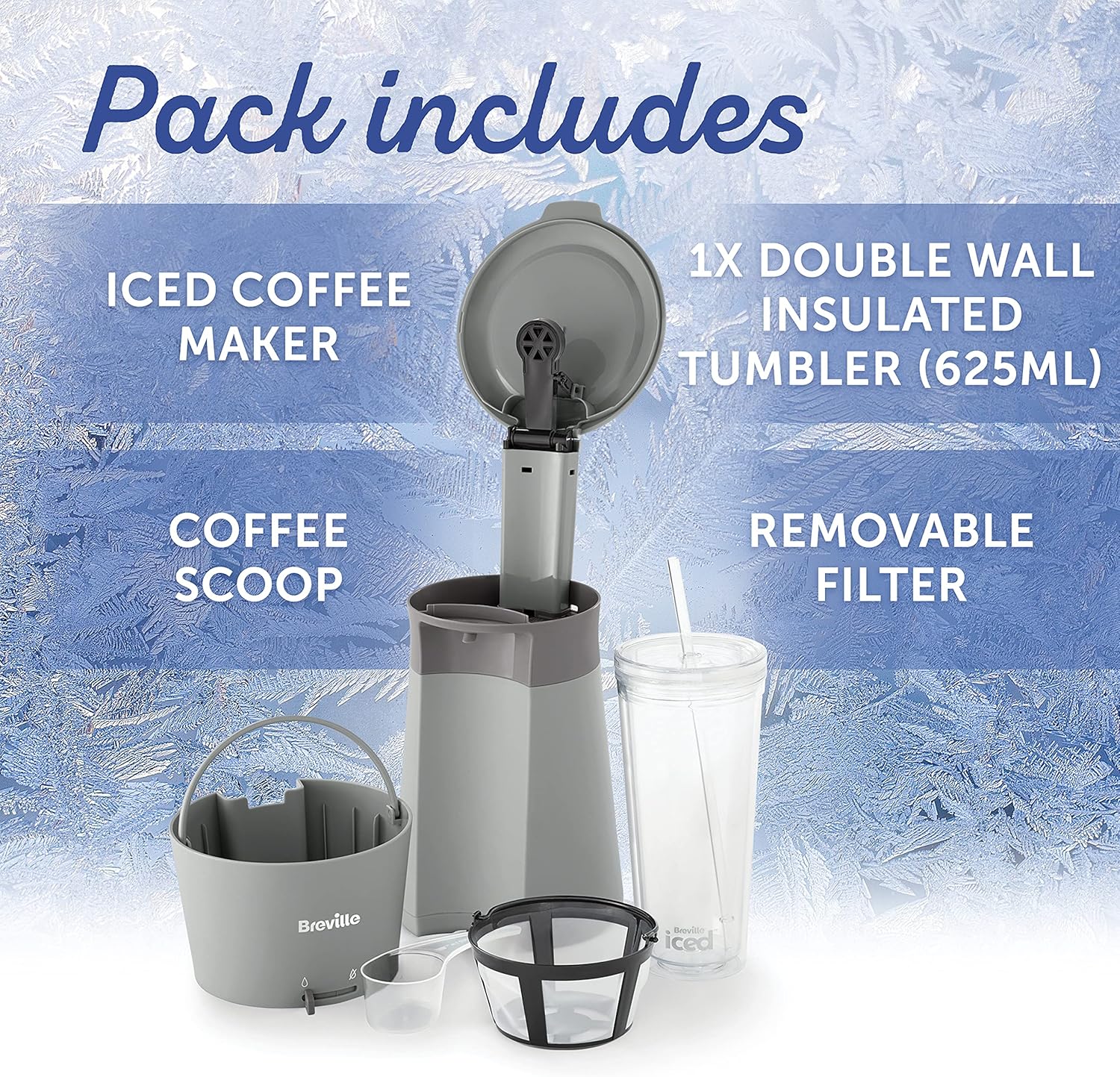 Breville Iced Coffee Maker | Single Serve Iced Coffee Machine Plus Coffee Cup with Straw | Ready in Under 4 Minutes | Grey [VCF155]