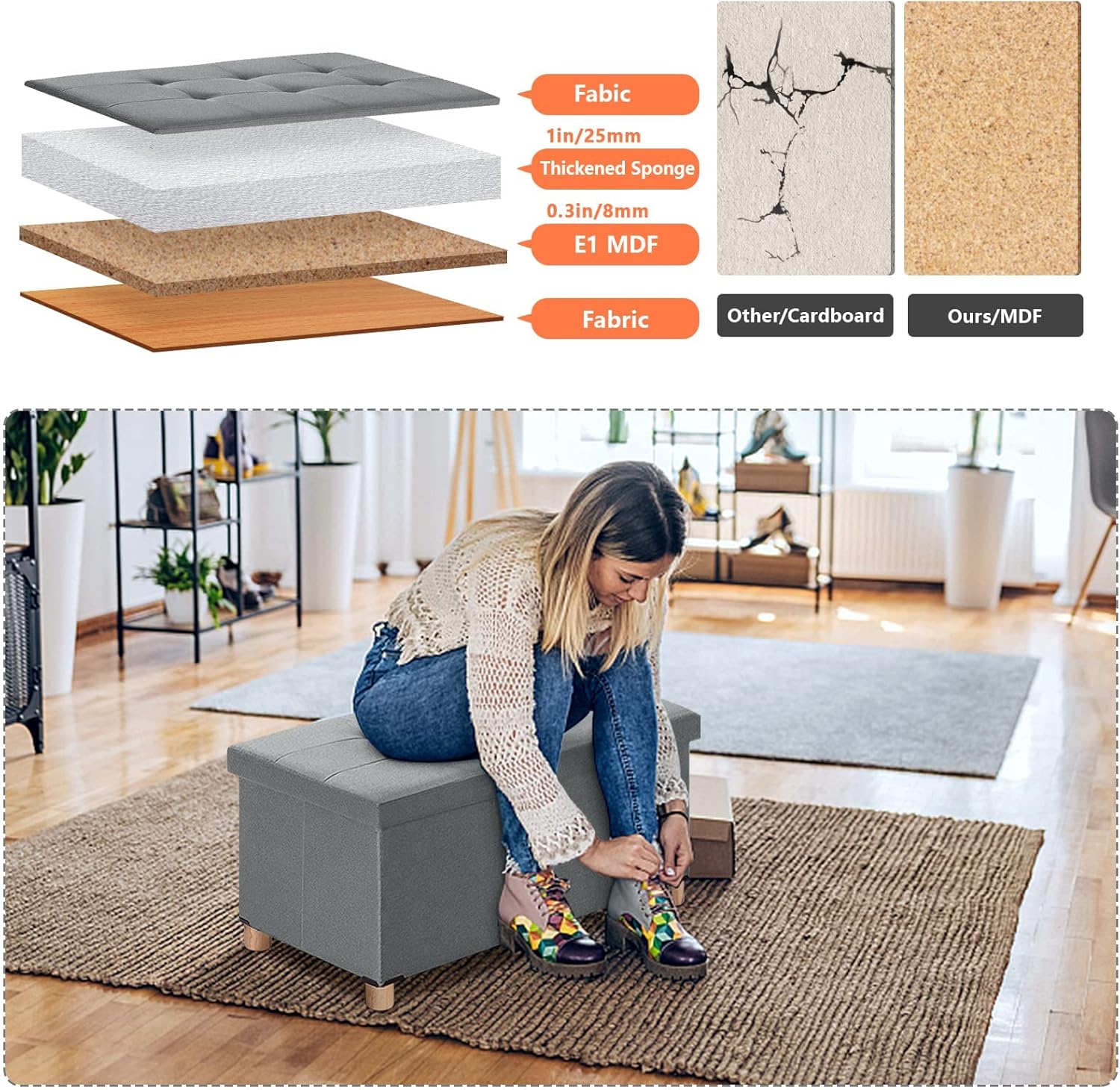 Its sturdy structure when set up is a perfect seating stool/shoe storage at the entrance or closet.