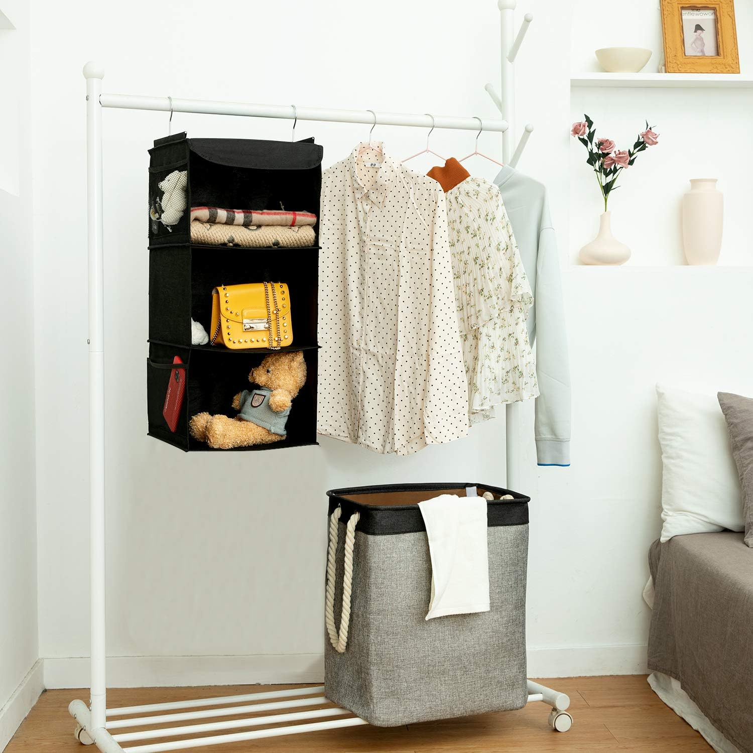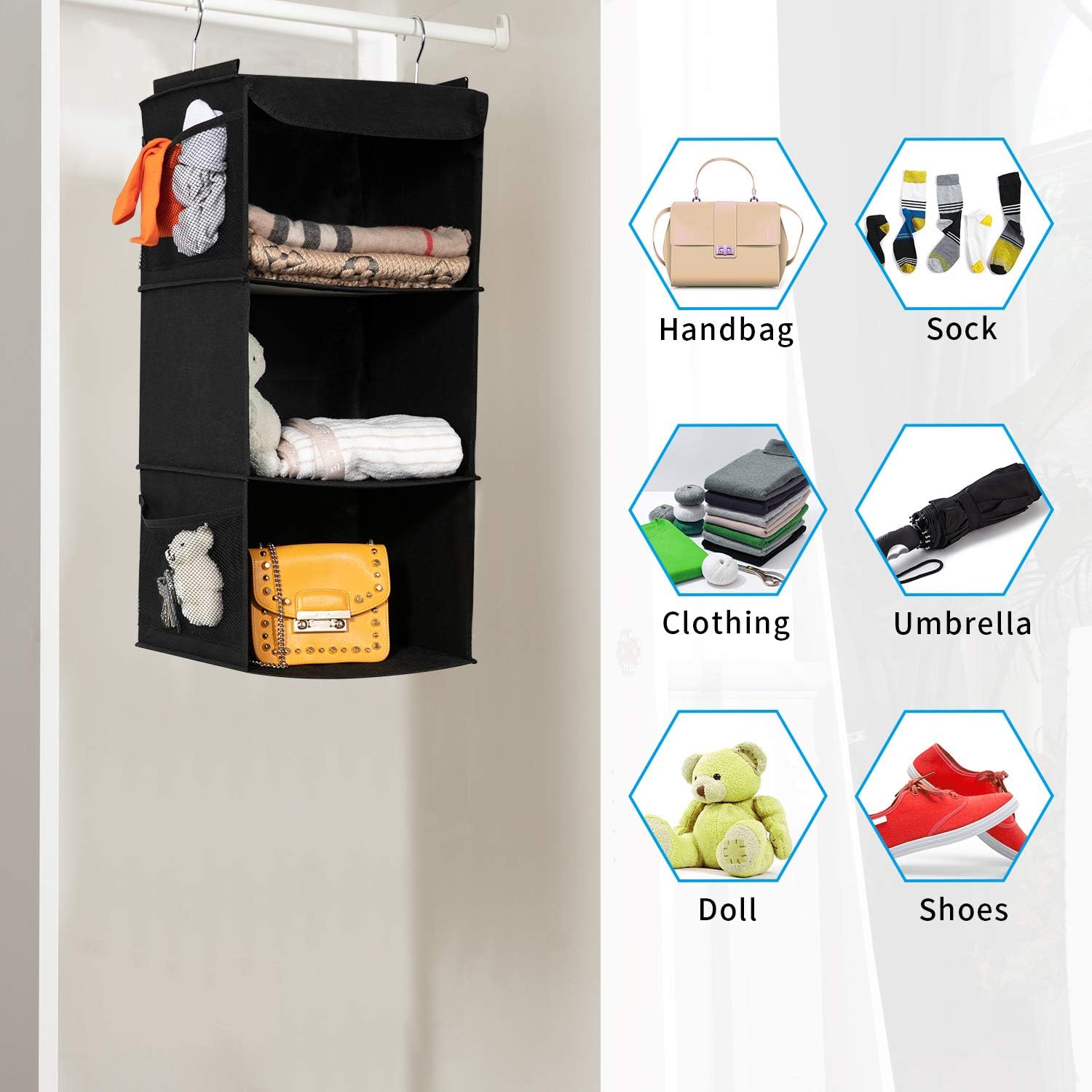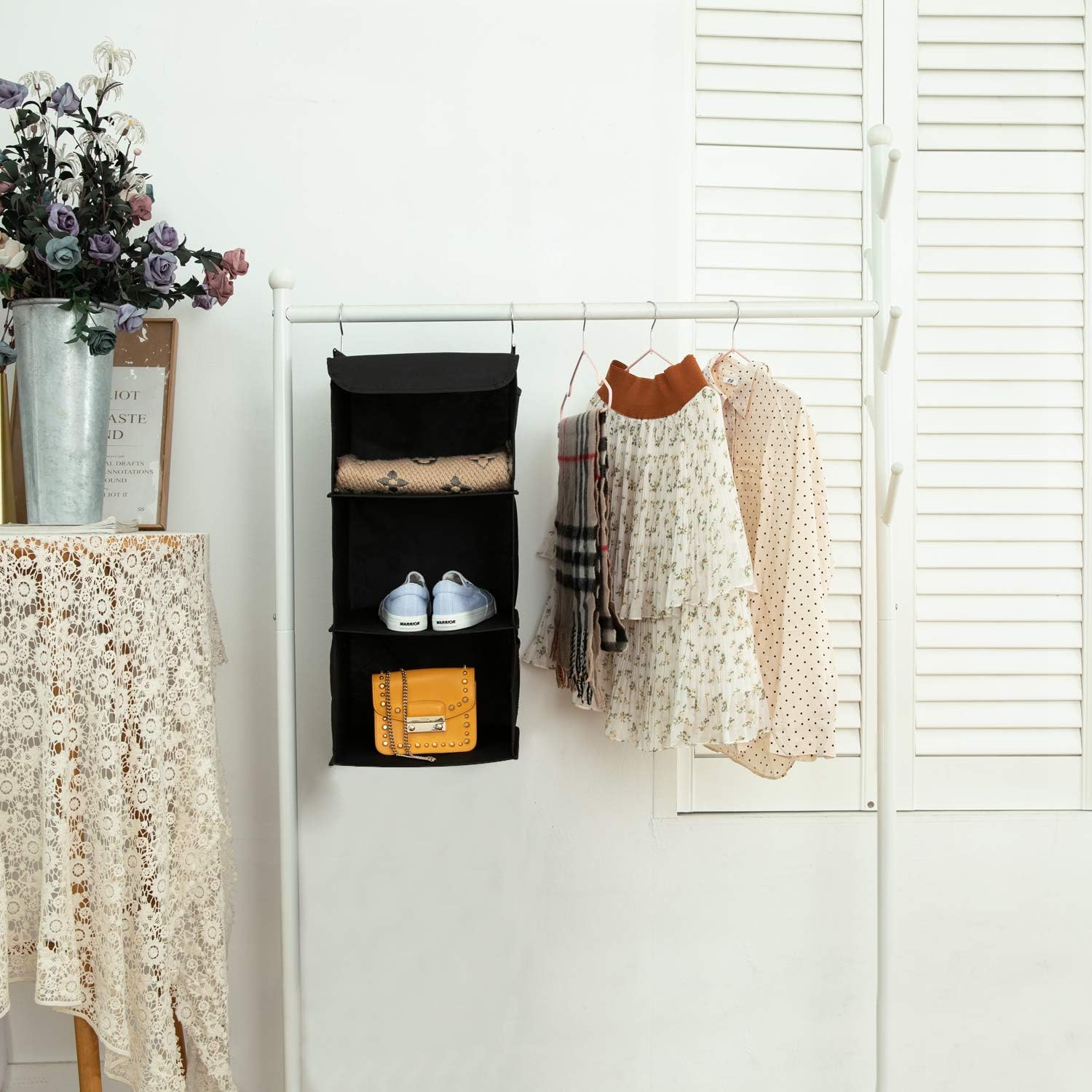 BrilliantJo Hanging Closet Organizer Set for Clothes Sweaters shoes 3 shelf Hanging Wardrobe Storage light Shelves Black(30 * 30 * 60cm)