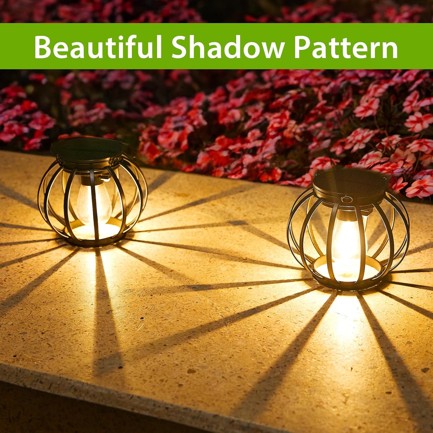【Wide Application & Best Gift】The solar garden lanterns can be hung on a tree; by a patio umbrella; by an eave, or placed outside by a pathway; on a grass pong, on a table top, adding a lovely ambience to your patio. Attractive and beautiful illumination make them the best decoration for your residence. The garden solar lights are also an amazing gift choice for friends and family in any occasions.