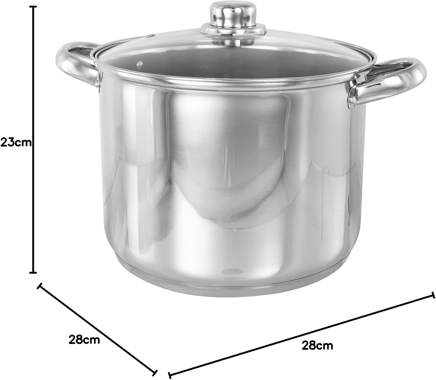 Buckingham 15140 Deep Induction Stock Pot with Glass Lid 28 cm, 13.5