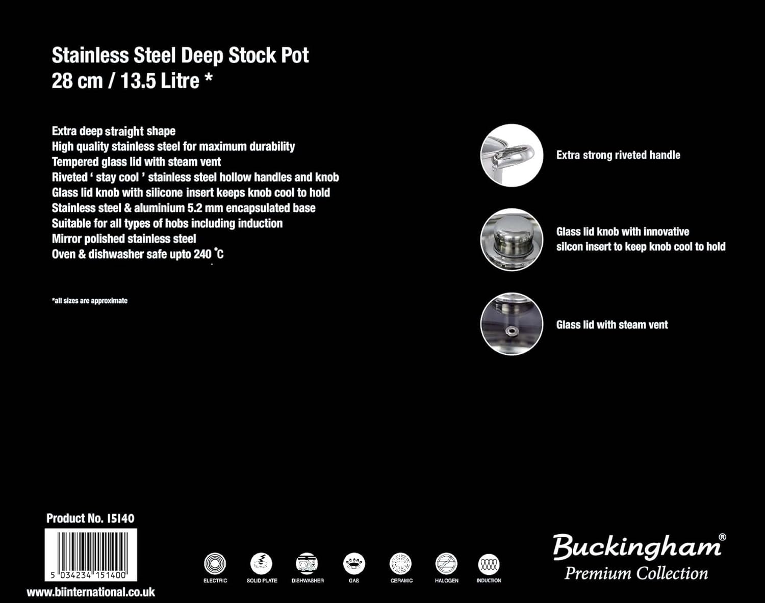 BUCKINGHAM Stainless Steel Deep Stock Pot 28 cm/ 13.5 L