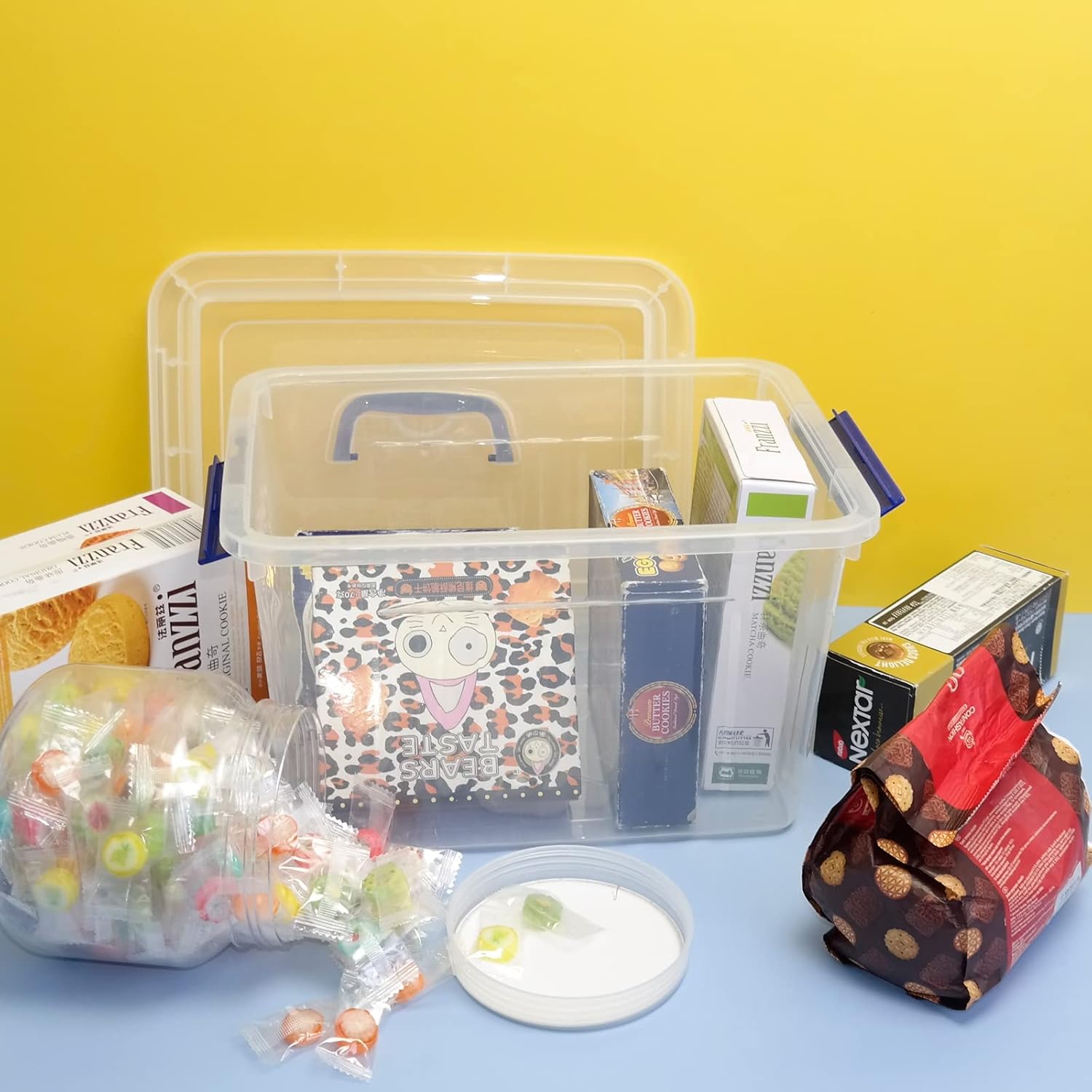 Set include 6 plastic storage boxes, about 12 Liter Size: 32.8 cm x 23.8 cm x 18.9 cm Made from durable see-through clear plastic Lid and latch to secure the storage boxes closure Can be used in living room, bedroom or bathroom”