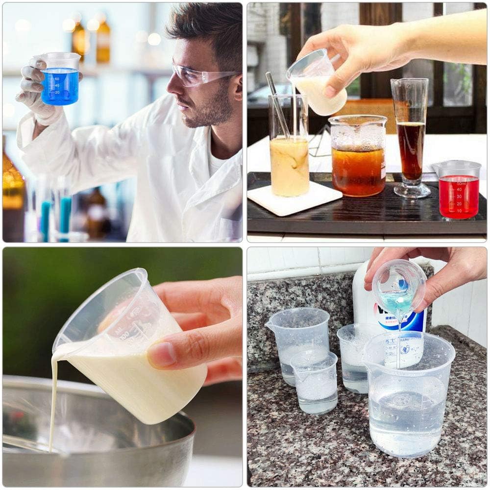 ✅【Easy to Clean & Store】:Plastic beakers are lightweight, they can be stacked on top of each other to save space. Our products are so easy to clean. Just throw into a dishwasher, or wash with soap and water. Light weight, easy to carry and easy to use. This design also allows nested, stackable solutions for easy storage (no rubber handles possible).