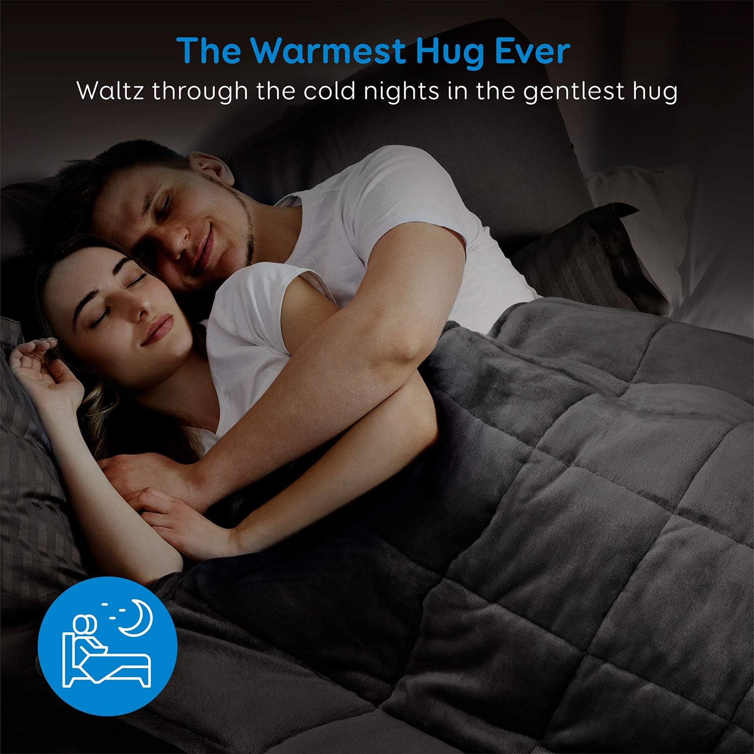 BUZIO Dual Sided Weighted Blanket cuddles you in perfect gentleness and warmth, so you have quality sound sleep all night long. Leave your worries behind, just drift away in arms of an angel.
