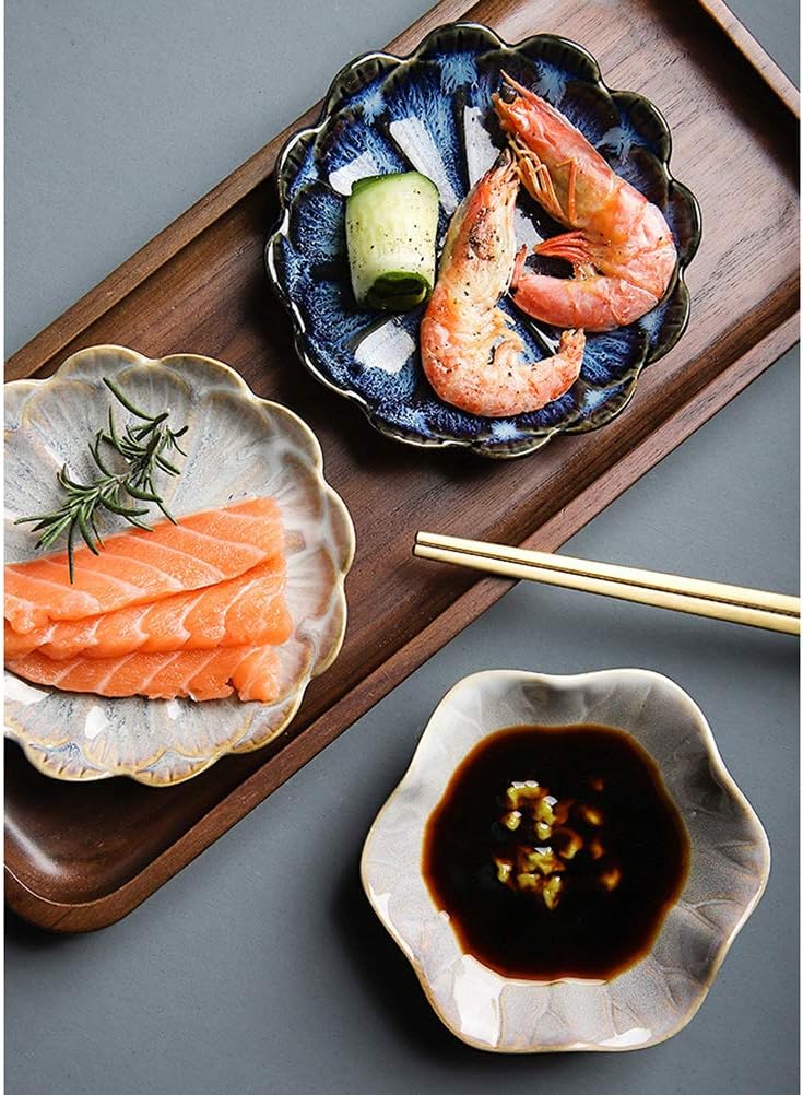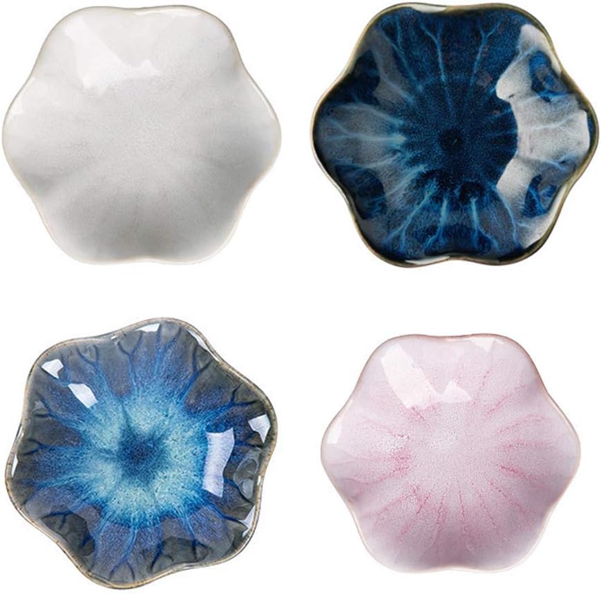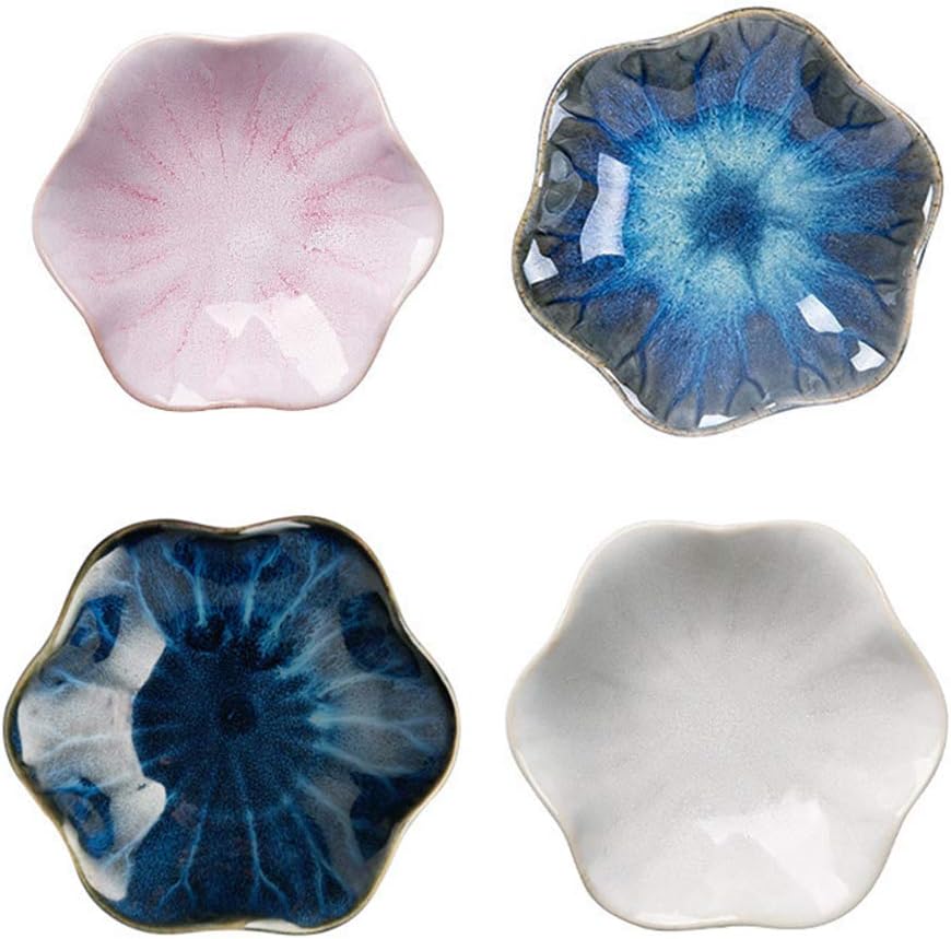 Cabilock Japanese Small Plate Set Ceramic Flower Dinner Plate Appetizer Dessert Sushi Sauce Dishes, 4.3 Inches, Microwave, Oven & Dishwasher Safe Porcelain Small Plates, Set of 4