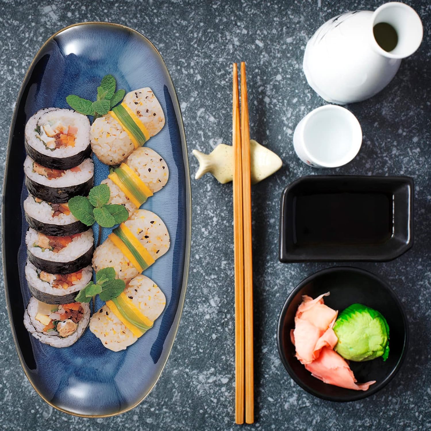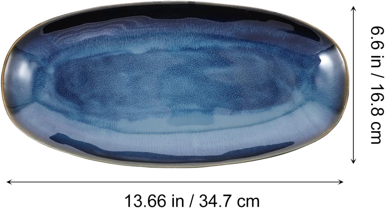 (as of [price_update_date] – Details 1PCS Blue Food Serving Platter, Dining Plate Ceramic Fish Plate Home Restaurant Hotel Sushi Plate Snack Plate