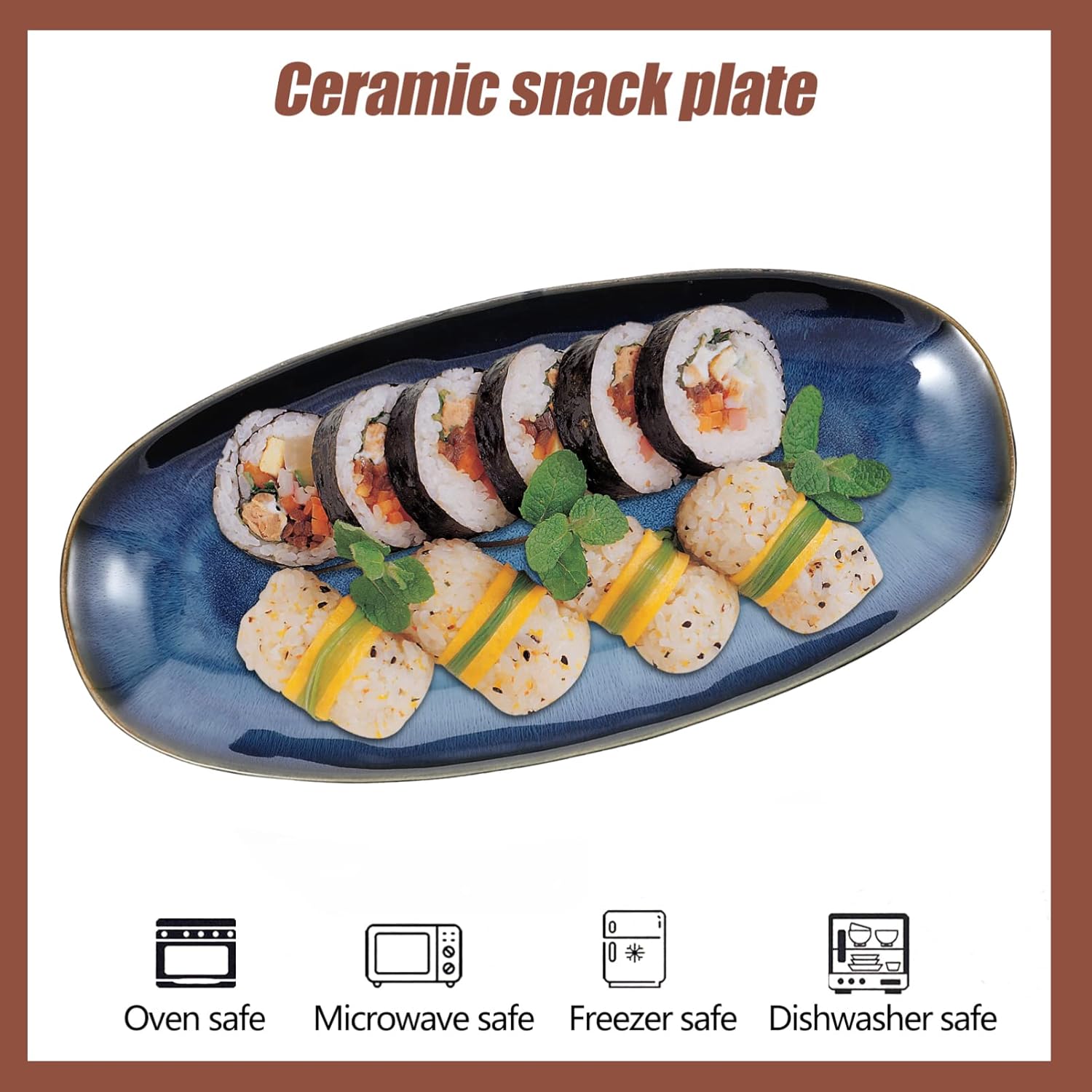 The glazed ceramic plates are resistant to odor and stains which can last for years. The glazed bottoms make these serving trays. Or simply put it in dishwasher!